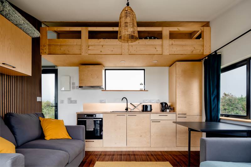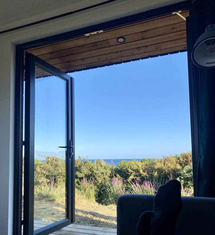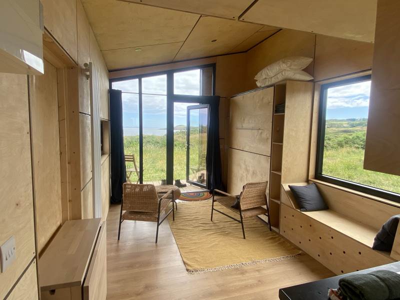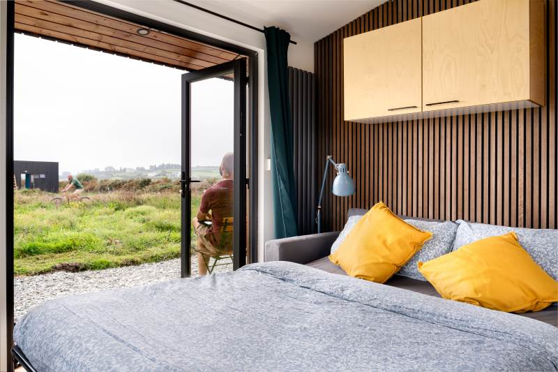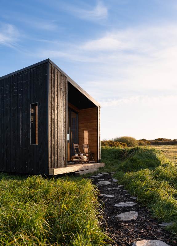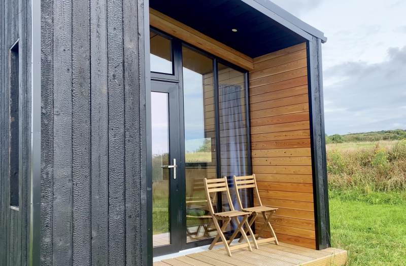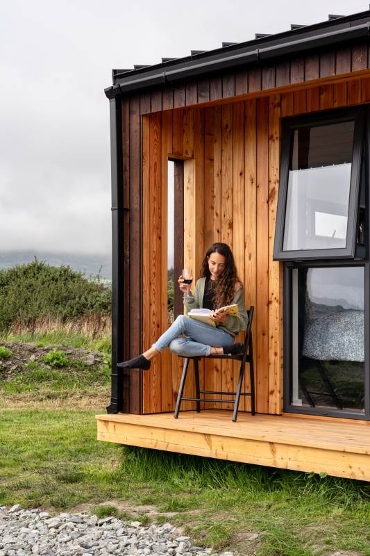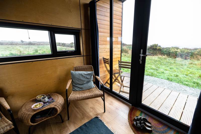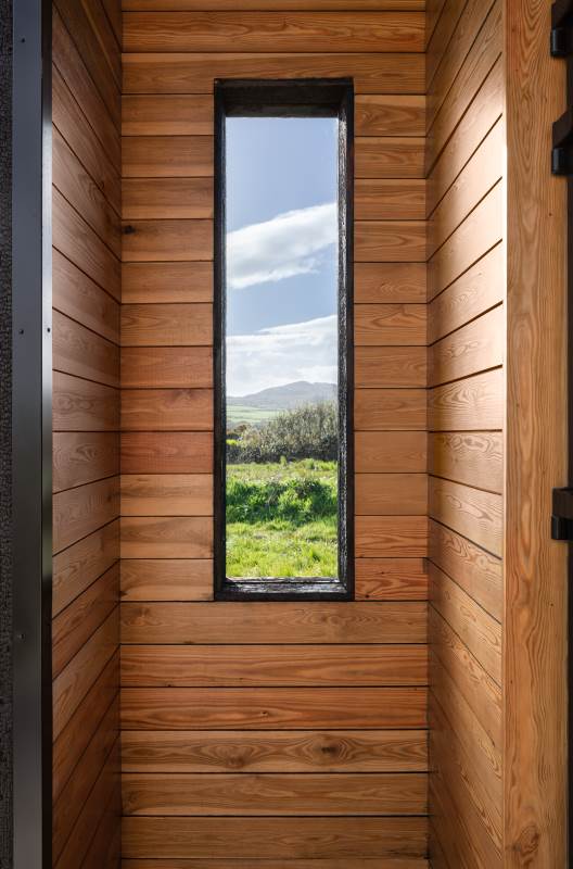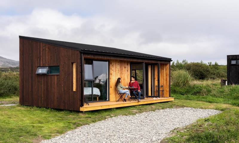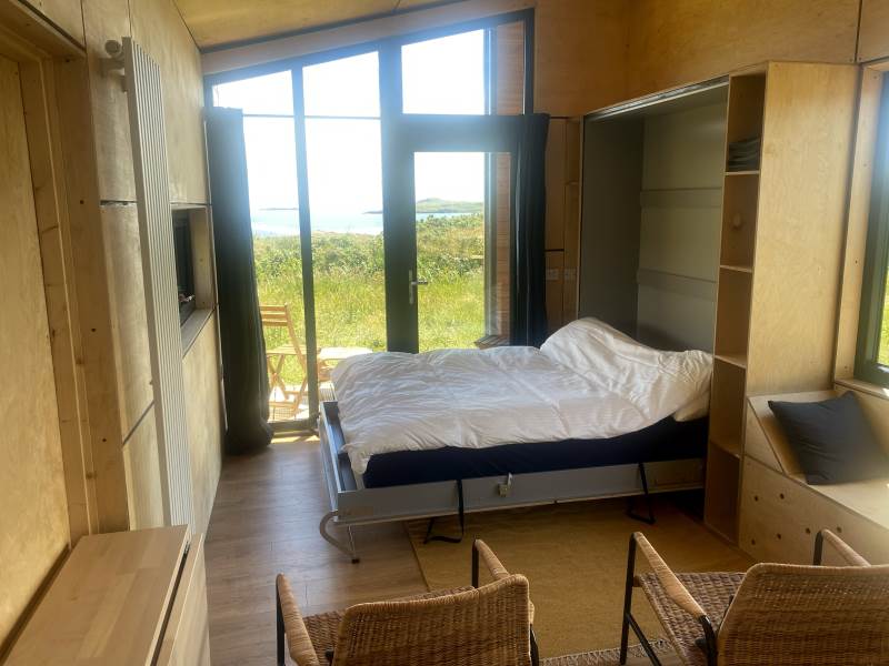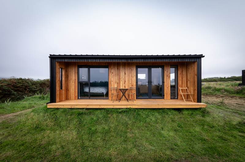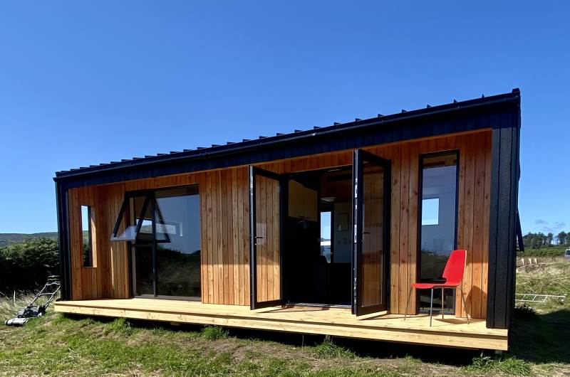 Our Sherkin EcoCabin features a fully glazed gable end looking out across the Wild Atlantic to Sherkin Island cape Clear and the iconic Fastnet Rock