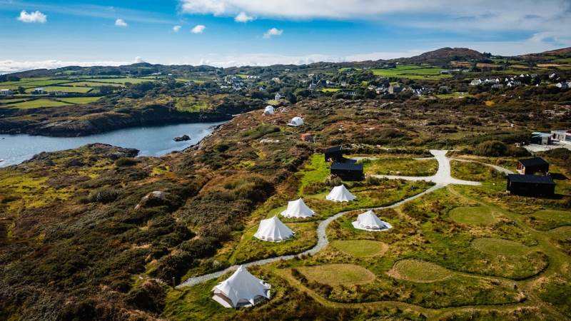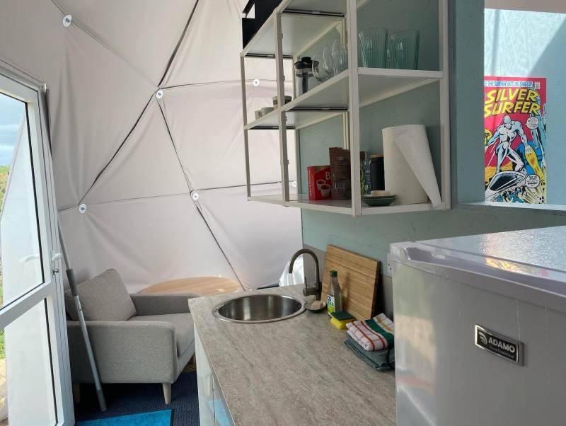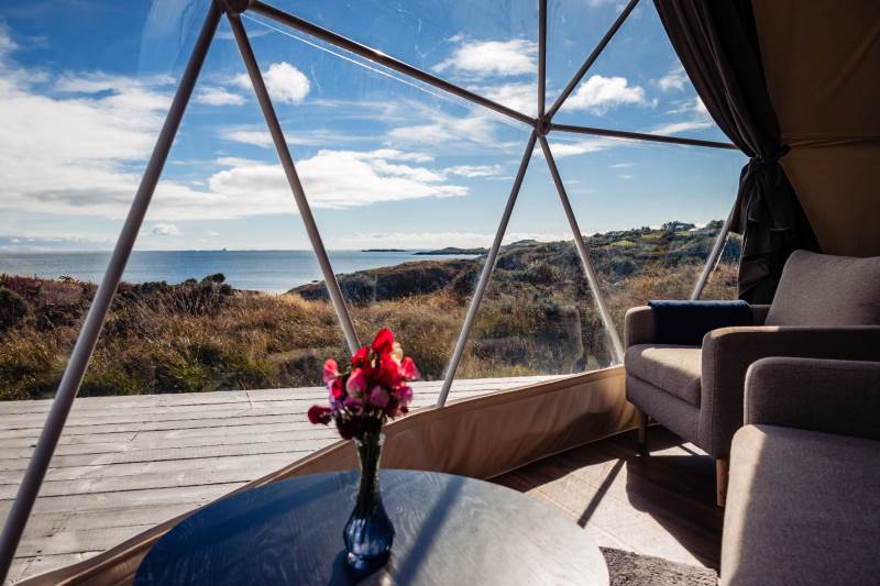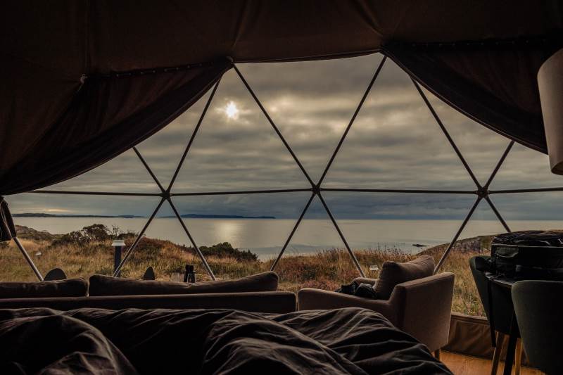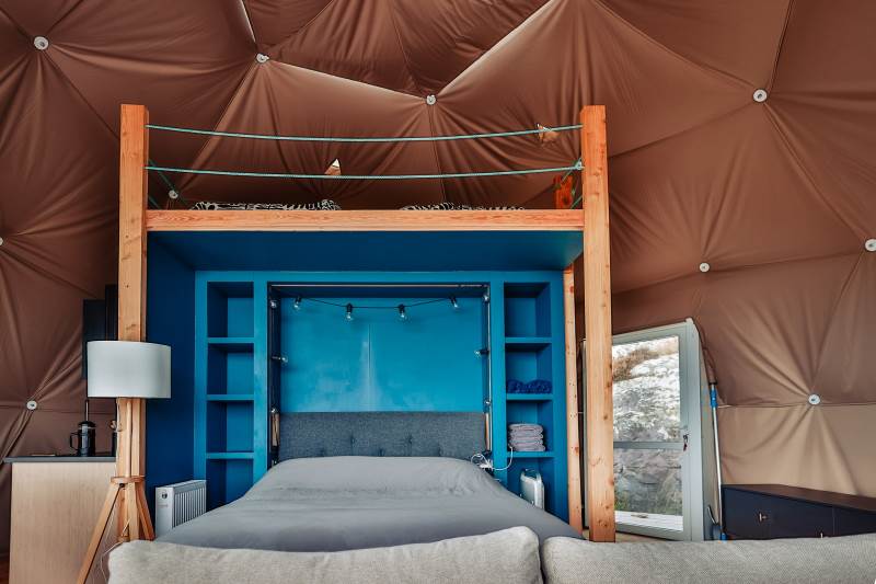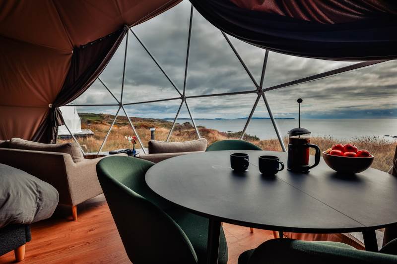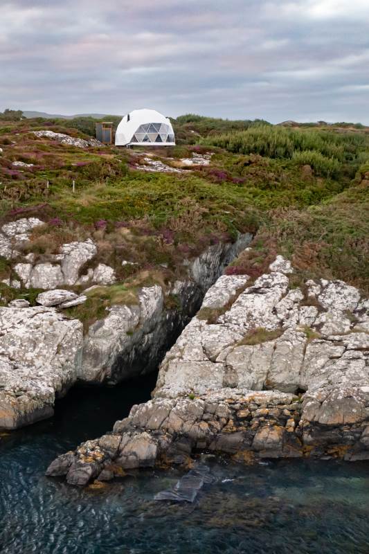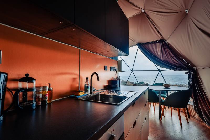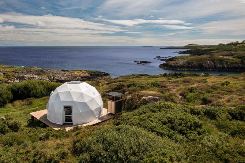 The Geodome was incredible, perched on the Atlantic coast, with uninterrupted views of the sea, right out to Fastnet lighthouse, this was a very special stay. The campsite is for outdoorsy types, you will need your boots ad plenty of layers out of season as it can be wet and windy, but it is a stunning location that is really off the beaten path. The facilities themselves are low key, and we liked the convenience of the outdoor shower and compostible toilet. The geodome has two separate sleeping areas (double and two singles) and a gally style kitchen that is a remarkable use of space. The star gazing window in the ceiling is a great touch. The whole front section is for soaking up the views either over meals at the dining table or curled up on the full sofa with the stove lit beside you. It's a wonderful hideaway where you can be completely self-contained in nature :)