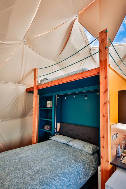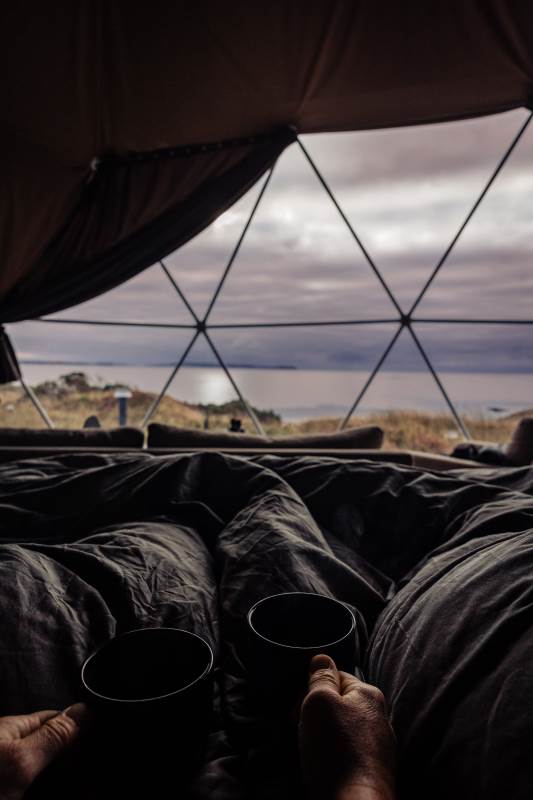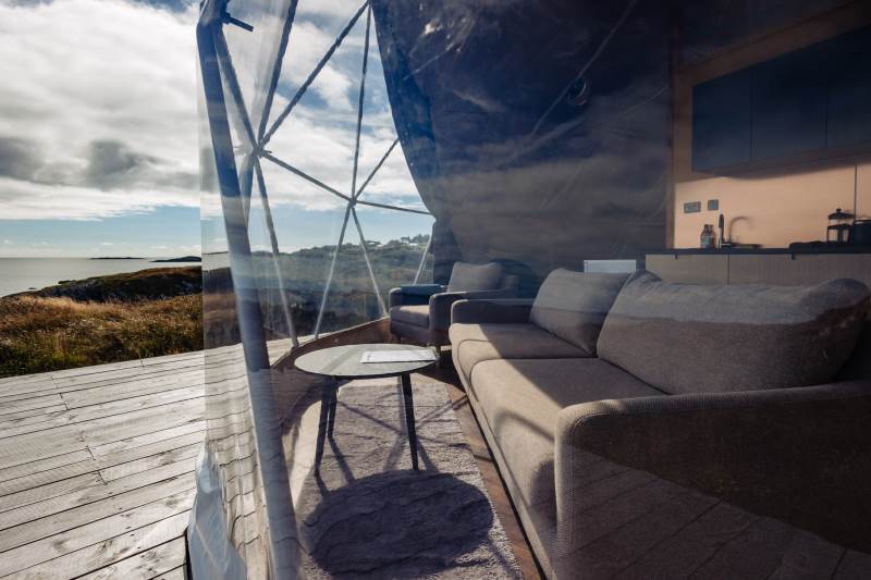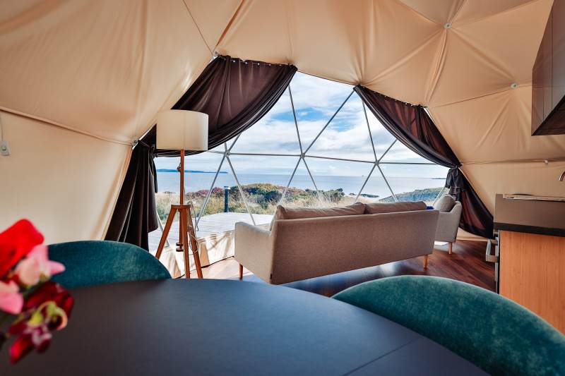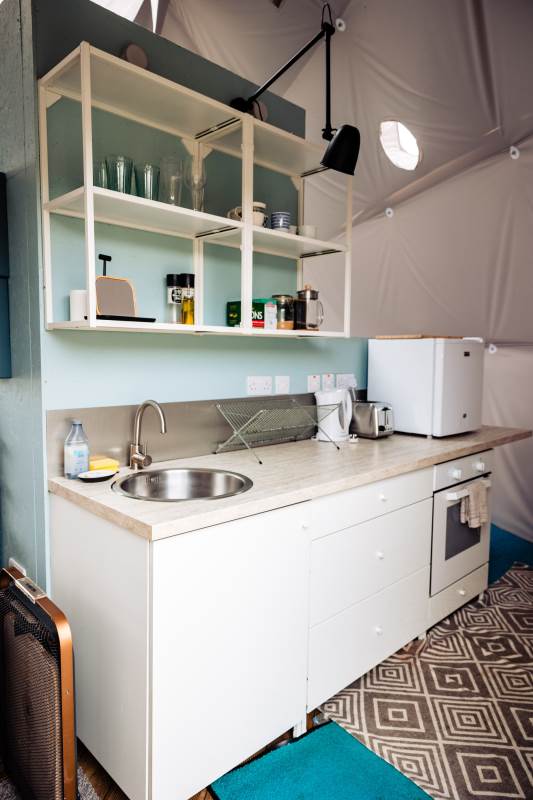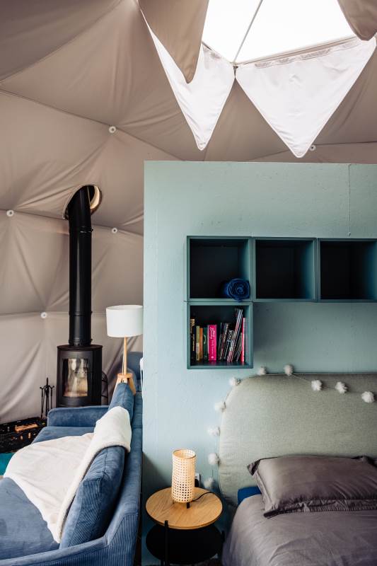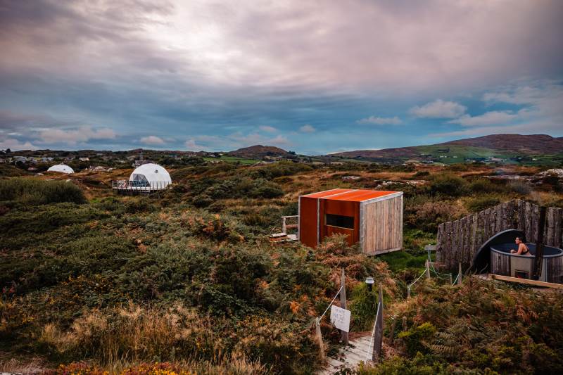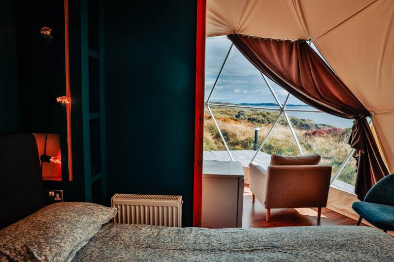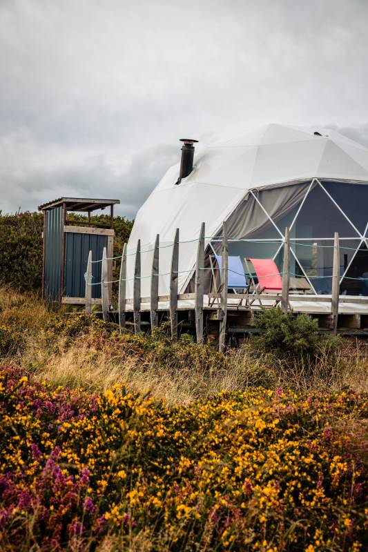The Geodome was incredible, perched on the Atlantic coast, with uninterrupted views of the sea, right out to Fastnet lighthouse, this was a very special stay. The campsite is for outdoorsy types, you will need your boots ad plenty of layers out of season as it can be wet and windy, but it is a stunning location that is really off the beaten path. The facilities themselves are low key, and we liked the convenience of the outdoor shower and compostible toilet. The geodome has two separate sleeping areas (double and two singles) and a gally style kitchen that is a remarkable use of space. The star gazing window in the ceiling is a great touch. The whole front section is for soaking up the views either over meals at the dining table or curled up on the full sofa with the stove lit beside you. It's a wonderful hideaway where you can be completely self-contained in nature :)