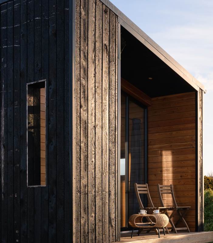 Our Fastnet EcoCabin features a fully glazed gable end looking out across the Wild Atlantic to the iconic Fastnet Rock Lighthouse.