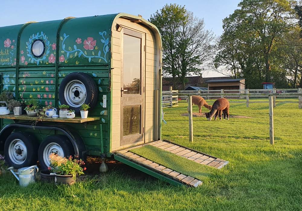 Our animals graze in the adjacent fields and we encourage you to get hands-on with our ponies, alpacas, pygmy goats, sheep, guinea pigs, farm cats, dogs and chickens; fresh eggs are always an option for breakfast! We offer a variety of animal experiences for children and families or just adults which are fun and therapeutic too! We welcome up to 2 friendly dogs per pod and also offer the option of bringing your horse with you on your break away – the hacking from our doorstep is fantastic – you can even hack to the beach! The Trans-Pennine Trail is very close by which is great for walking, cycling, horse-riding - it's only 2 miles to Hornsea and its beach!