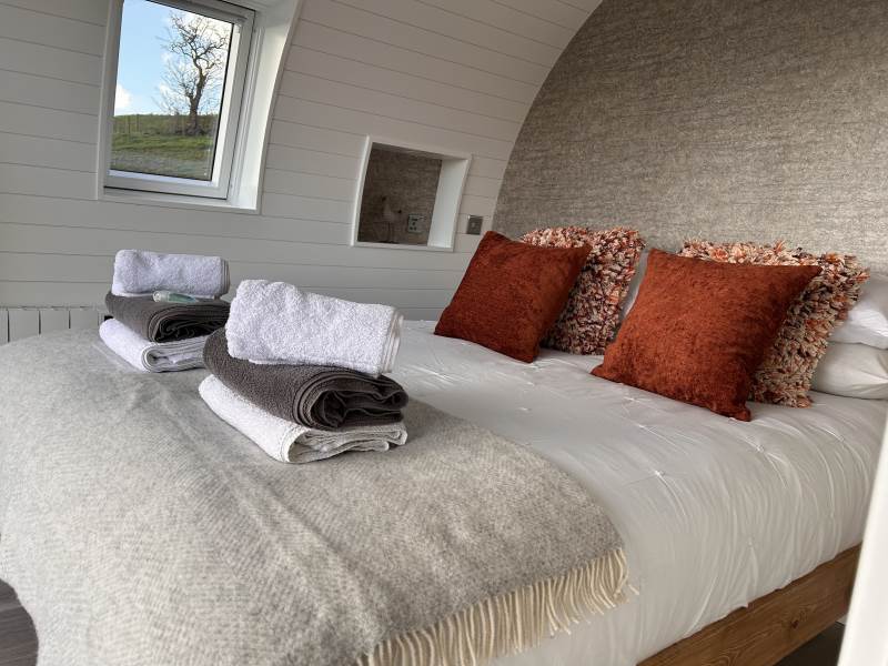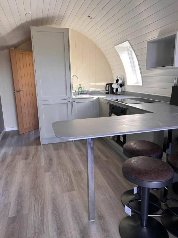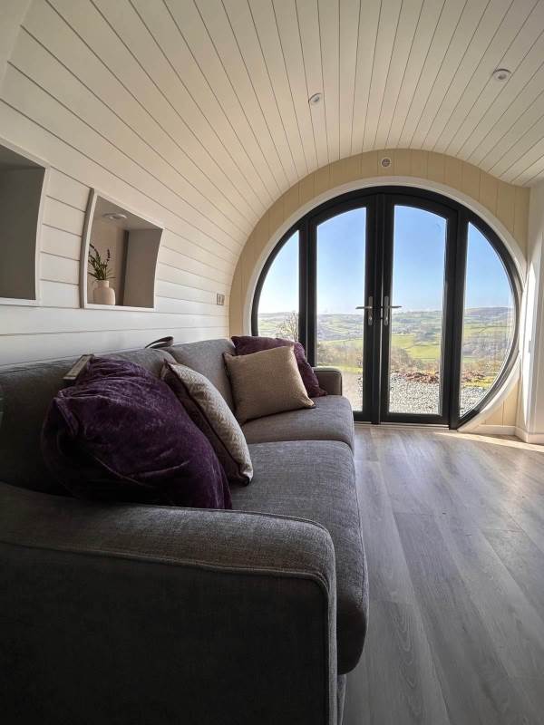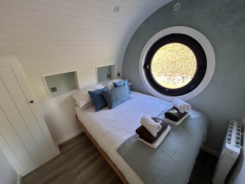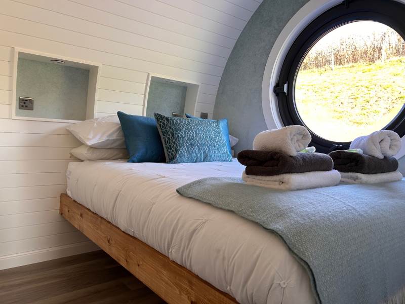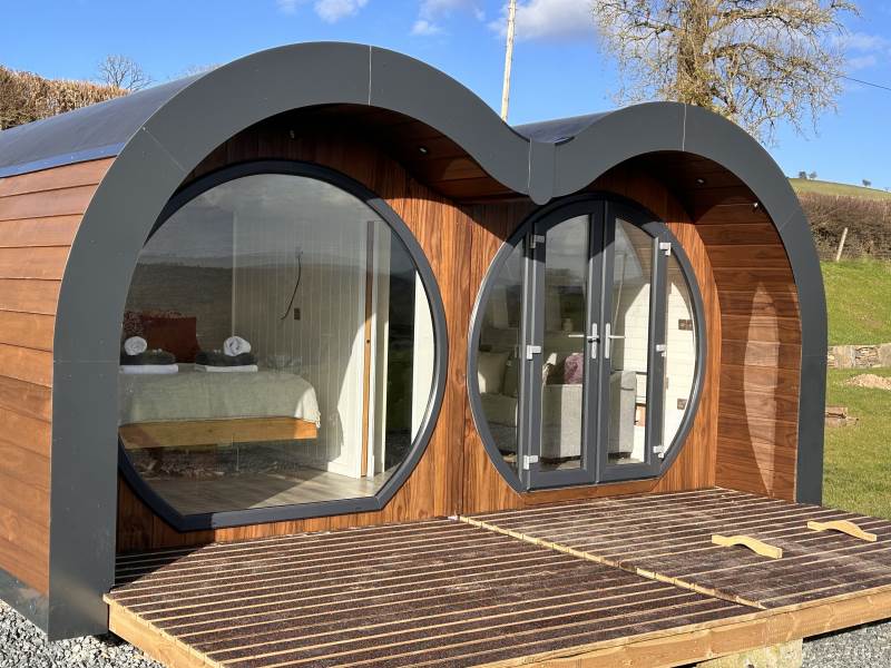 A luxury pod which sleeps up to 2 adults and 1 child (double bed and sofa bed)