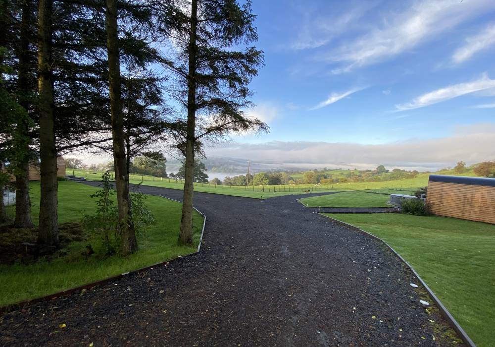 Our site has a large car park (about 125 metres from the Irfon pod) and the use of a trolley (or please ask for help) to take your luggage to the pods on our wide paths. The site itself is vehicle free.