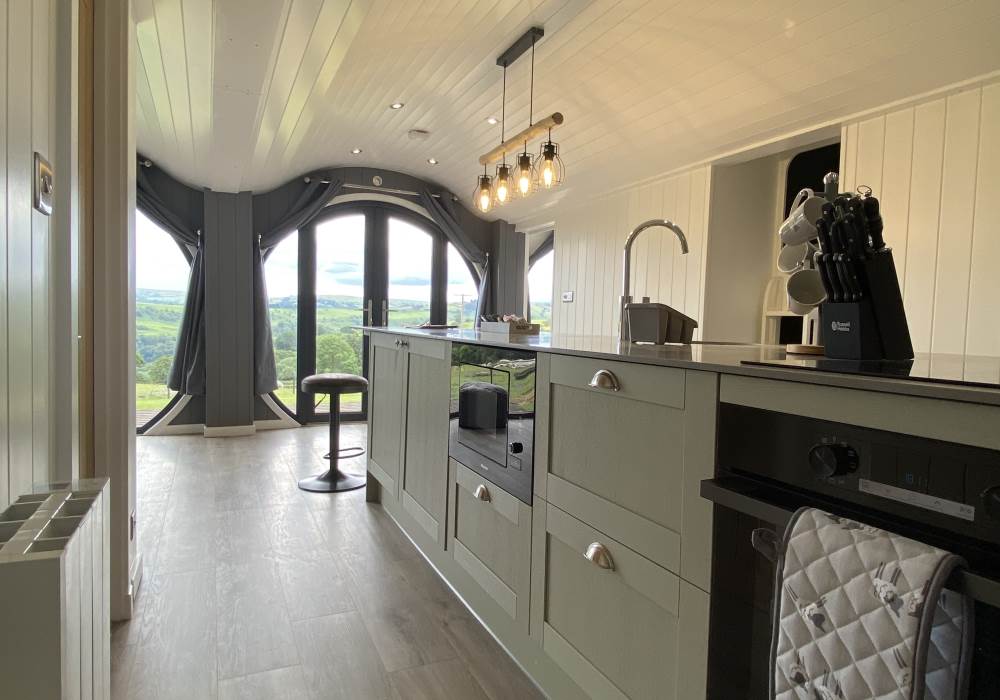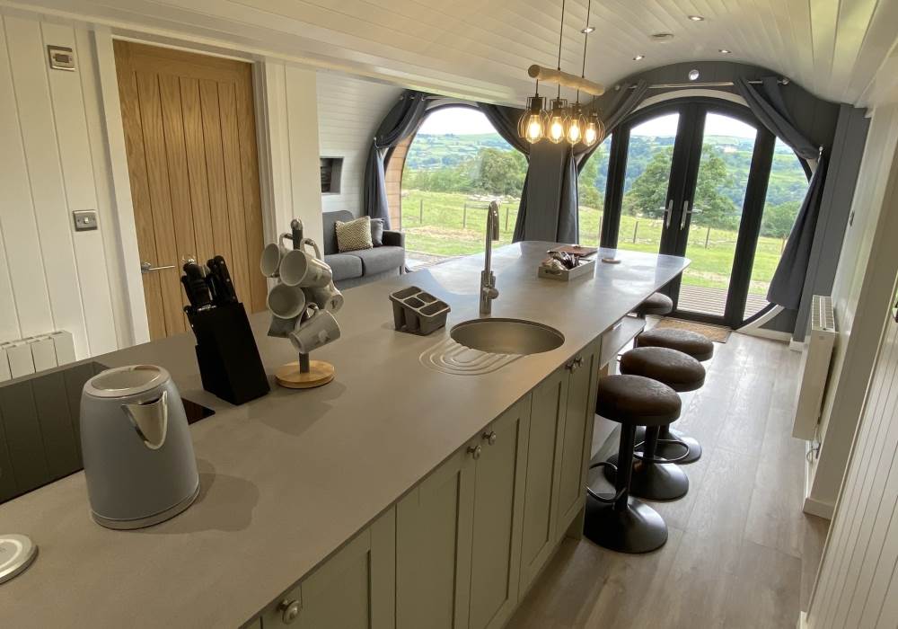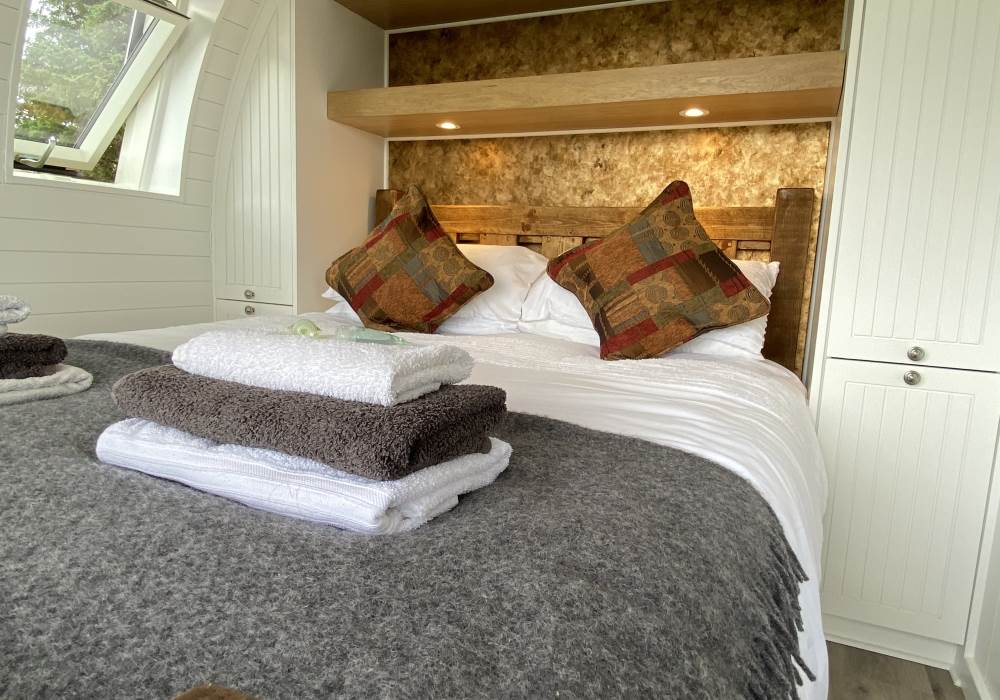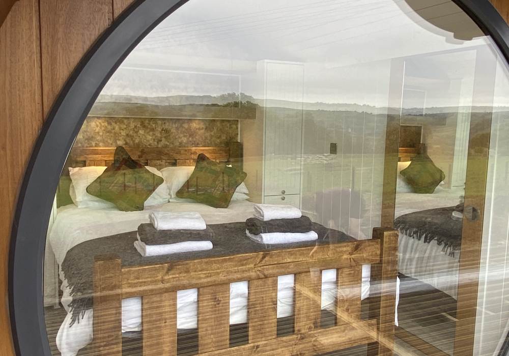 We will have just 4 pods on the site so you can relax, refresh and recharge. All pods have stunning views over the valley to Breconshire and on a clear day you can see as far as the Brecon Beacons. This pod features full round windows for the ultimate view of the stunning Breconshire countryside.