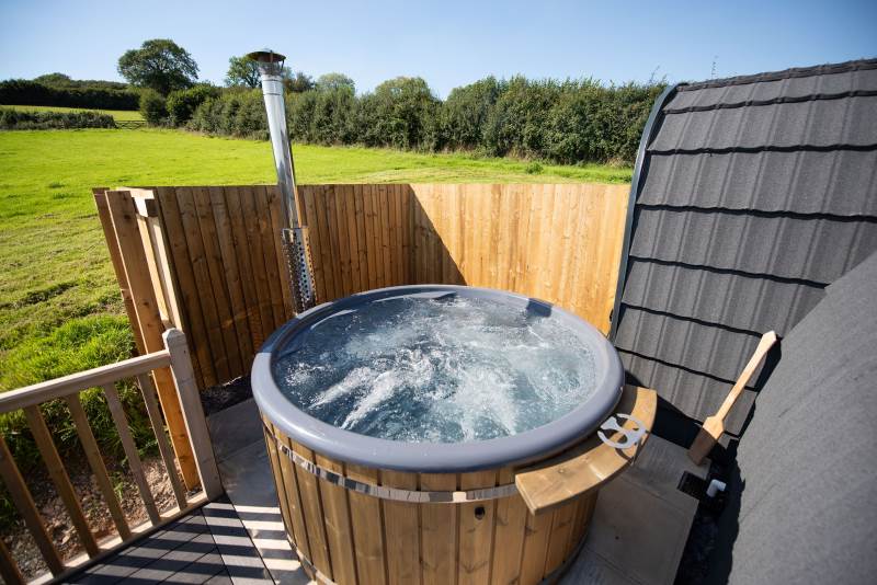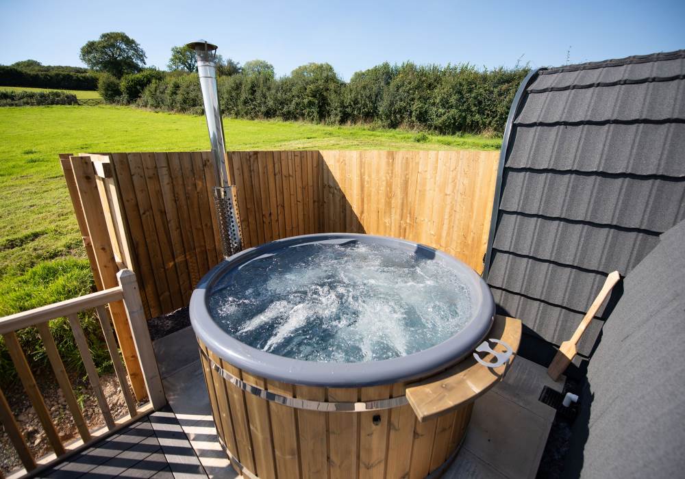 Includes a wood-fired hot tub.
