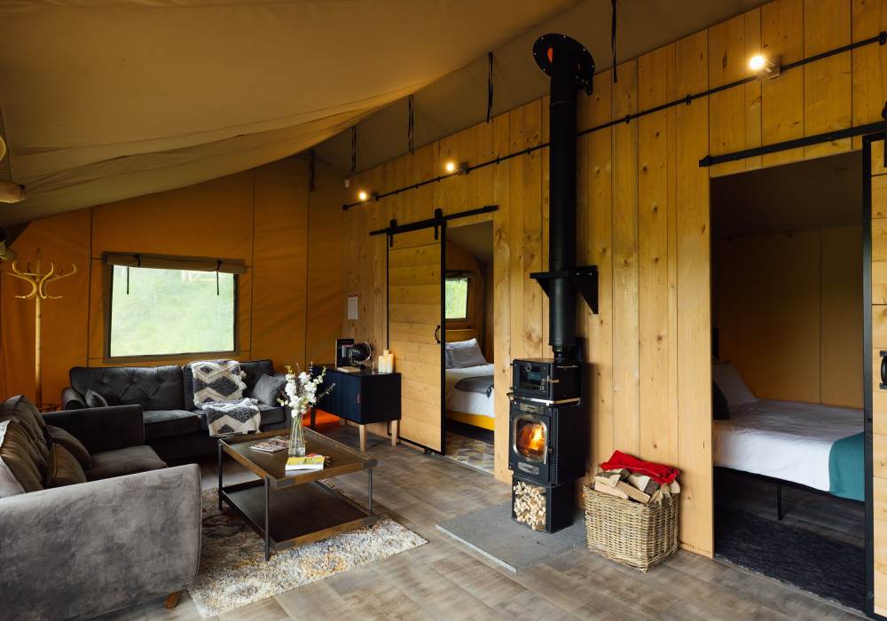 A spacious, private safari lodge with its own wood-fired hot tub — ideal for larger families or groups looking for more room to relax and spend time together
