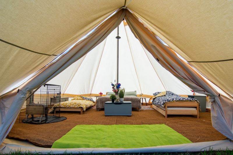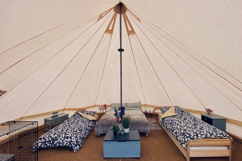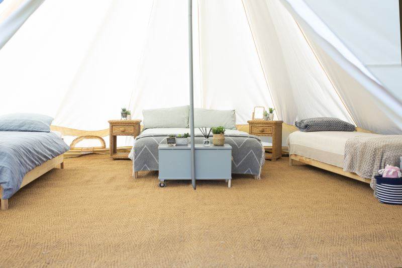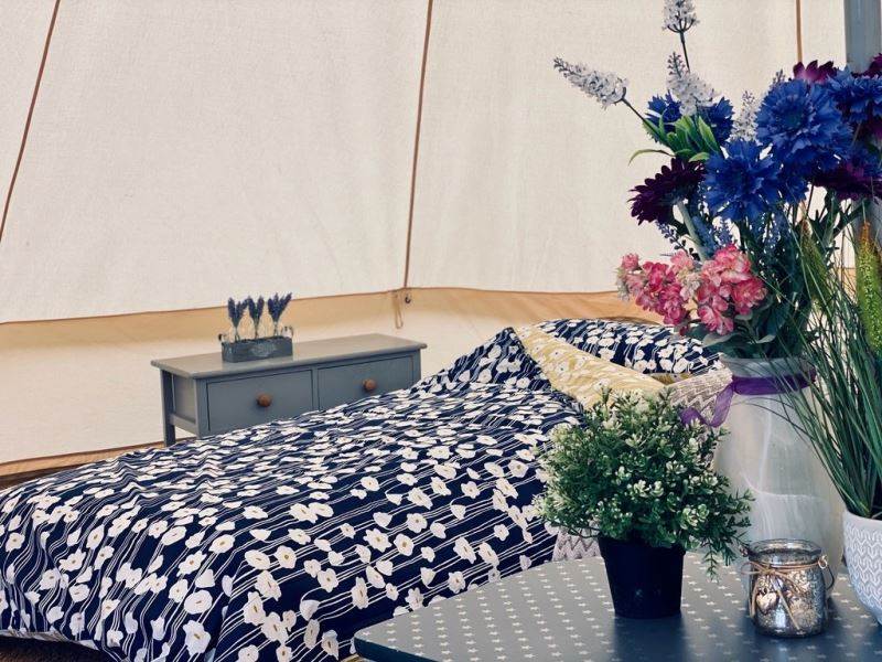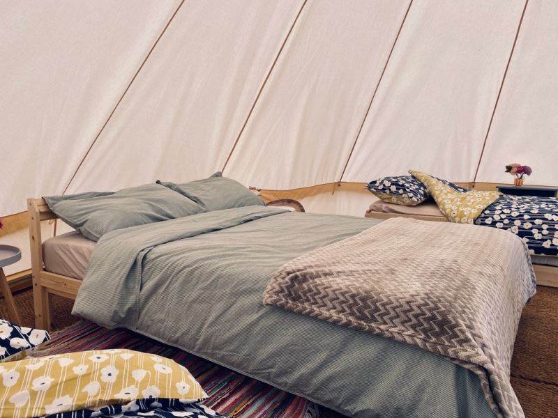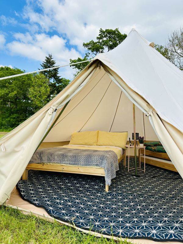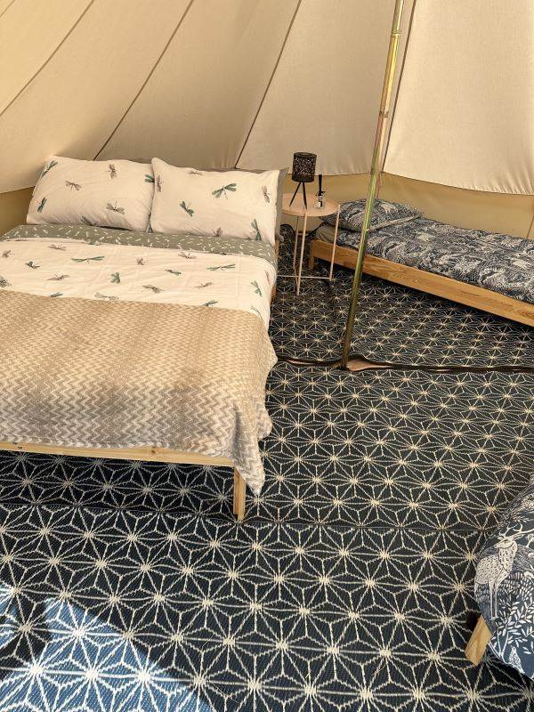 A beautifully furnished 5m bell tent which sleeps up to 5 people.