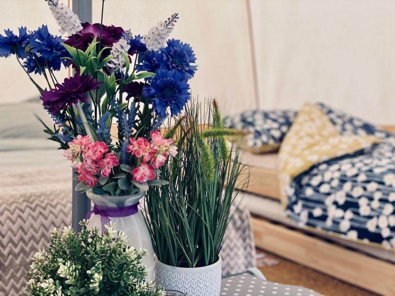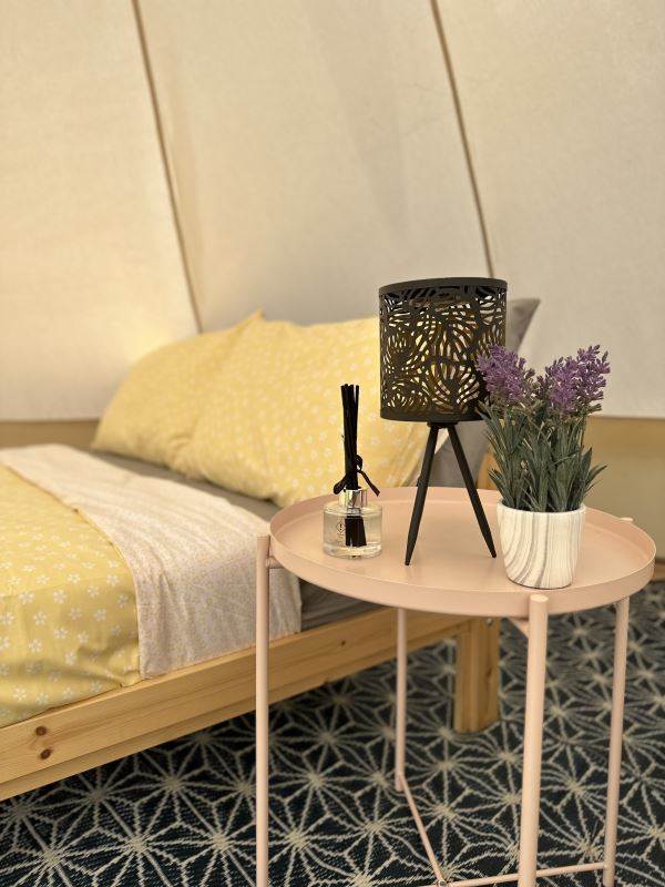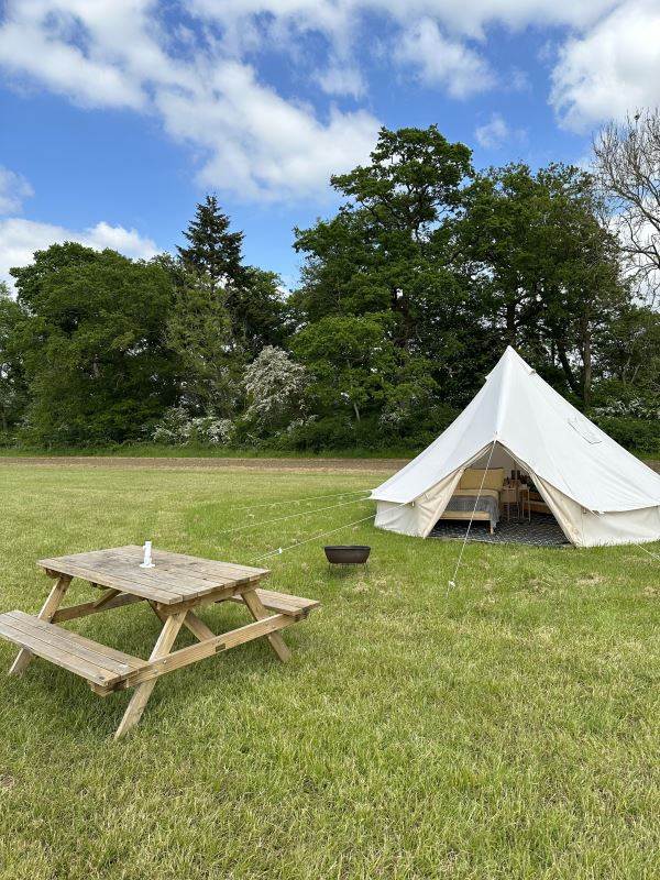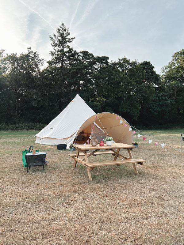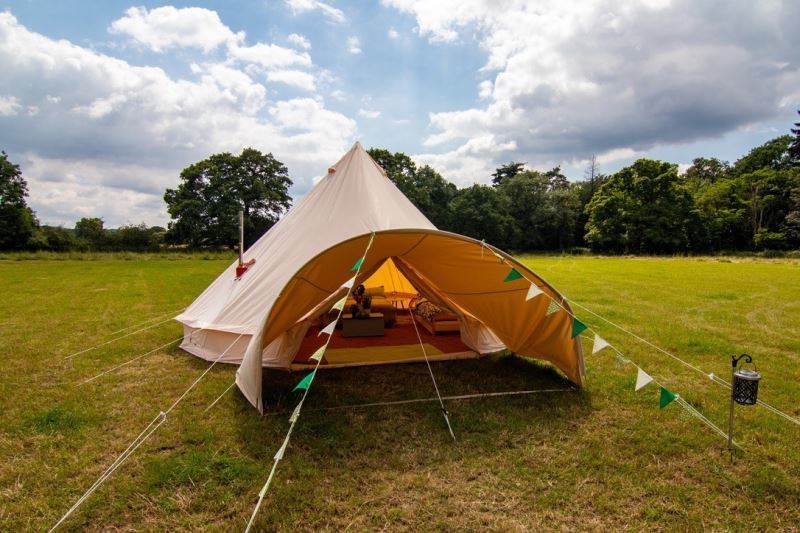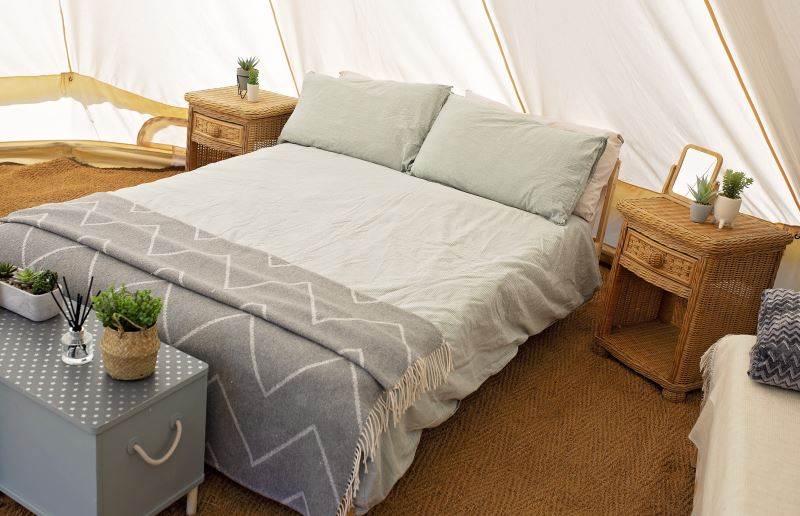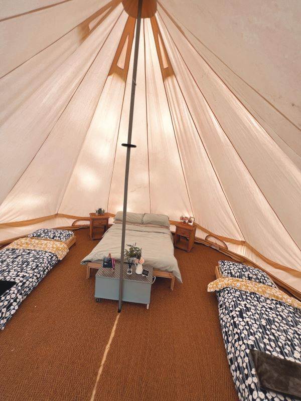 A beautifully furnished 5m bell tent which sleeps up to 5 people.