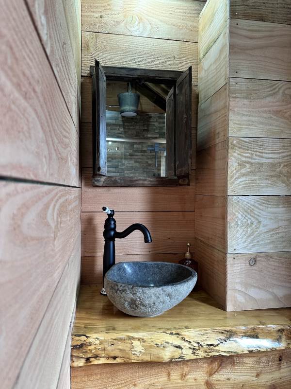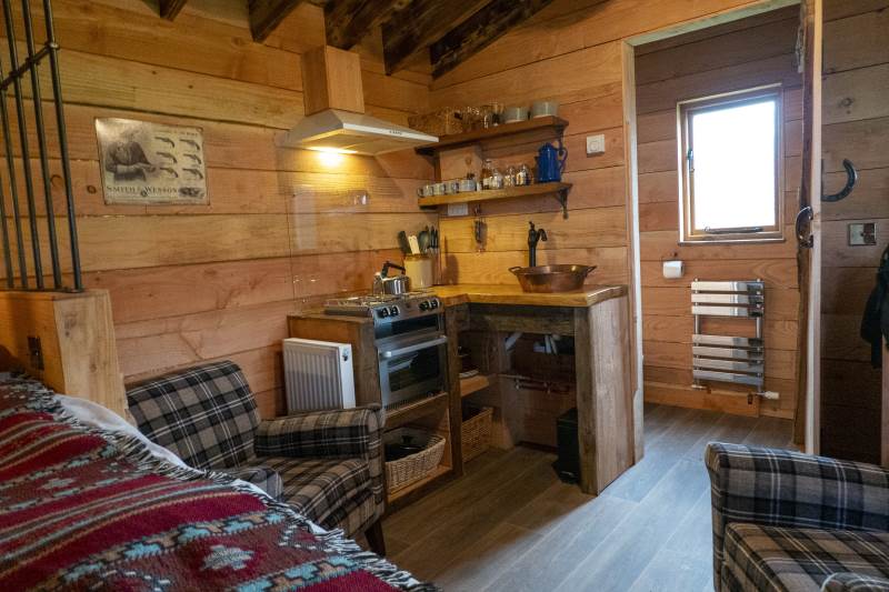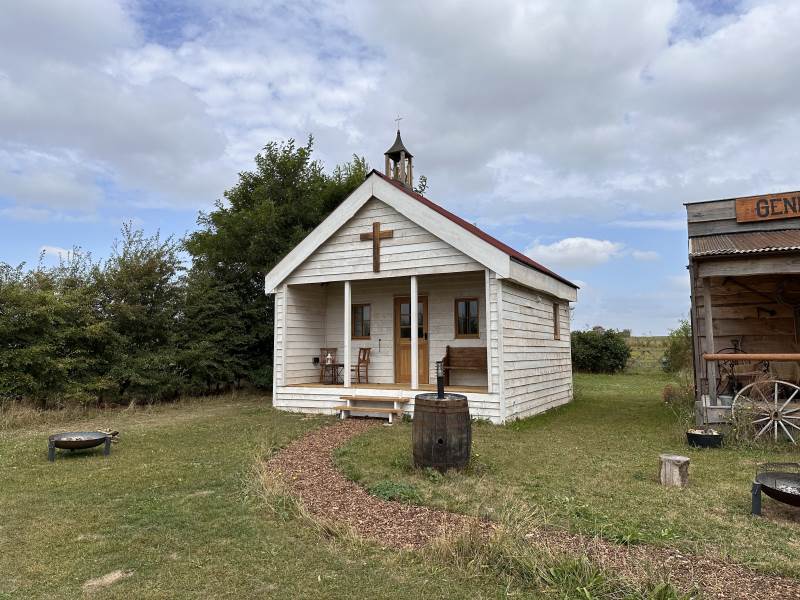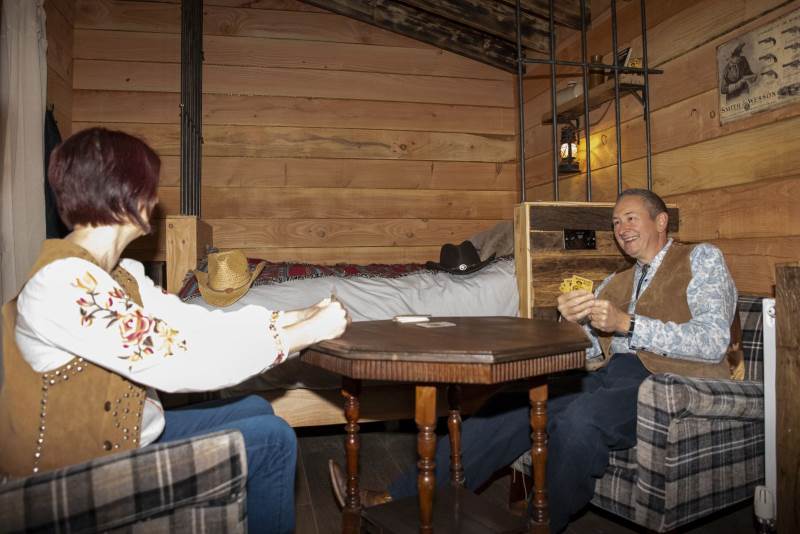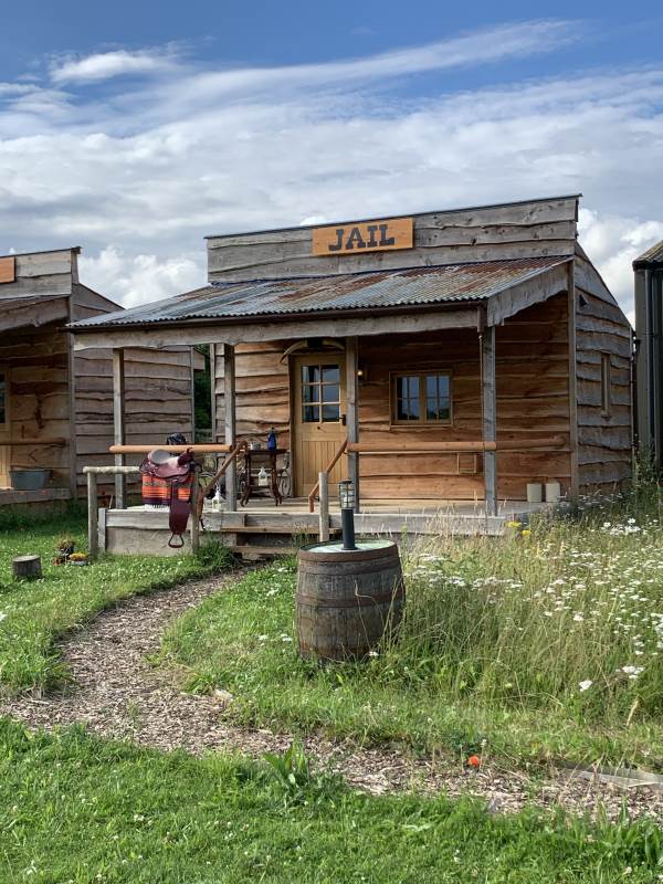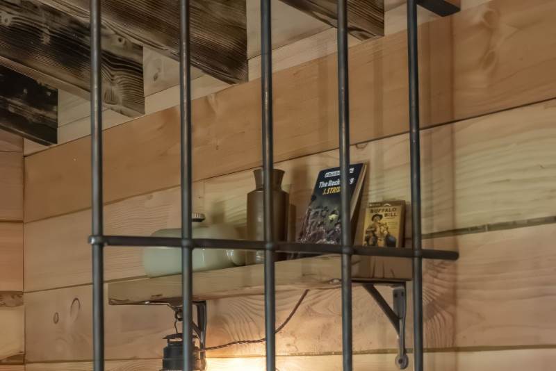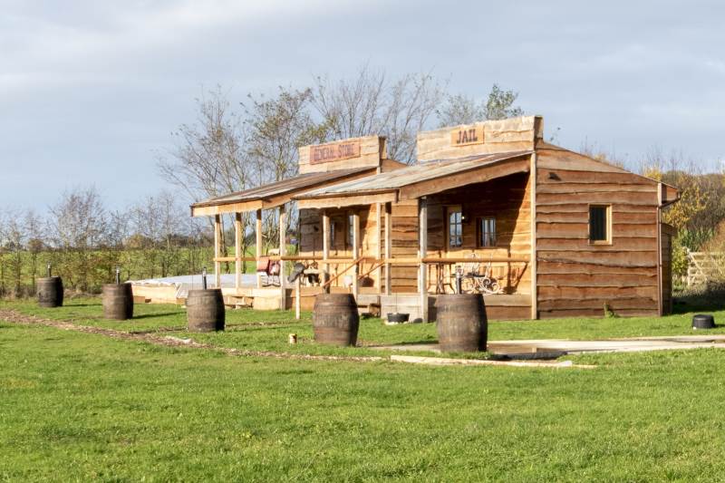 Authentically designed cabin evoking the nostalgic atmosphere of a 19th century Wild West general store and trading post.