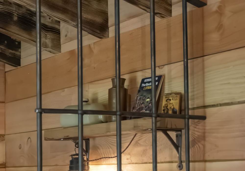 Lovingly hand crafted bespoke cabin themed in the style of 1850s American Wild West Jail and Sheriffs office. Retreat to the comfort of a super soft king size bed and en-suite bathroom with a choice of rainfall shower from the tin bucket or the riser shower, equipped with a flushing toilet and unique wash bowl sink. To top it all off indulge in complimentary eco-friendly/vegan Out Of Eden hand soap and shower gels.