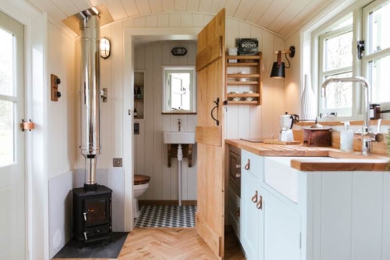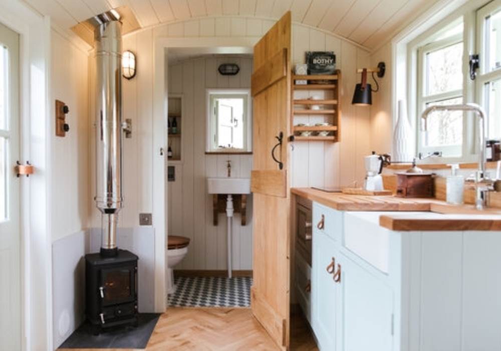 Also provided are WIFI, smart speaker, board games, binoculars, books, walking map, torch, outdoors muddy boot wash, outdoor storage for muddy boots.