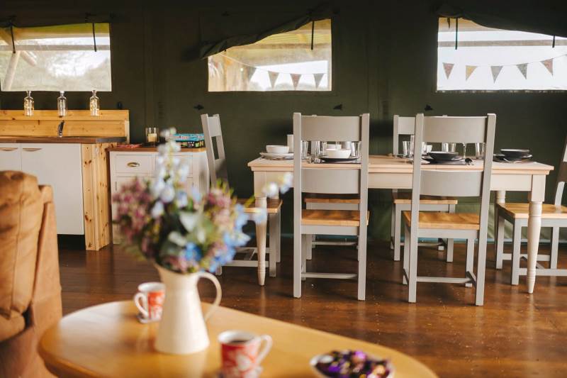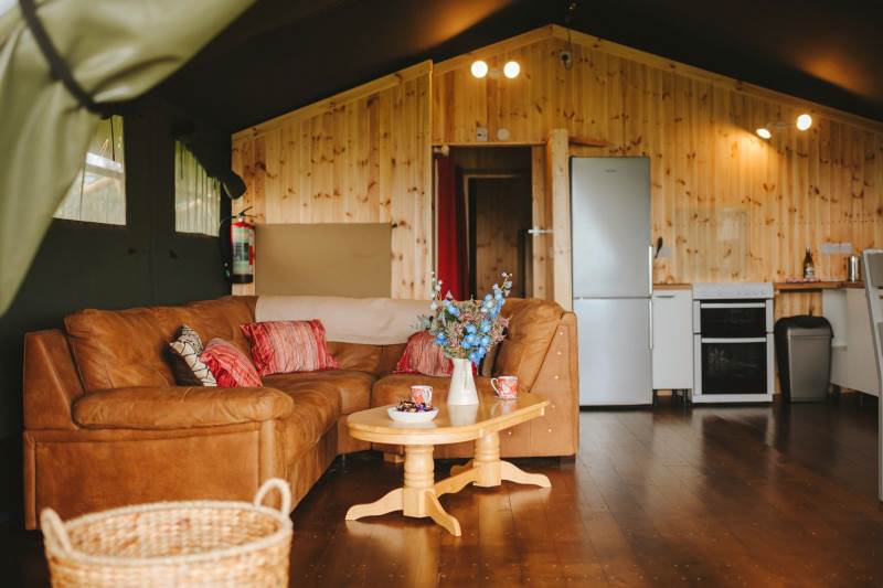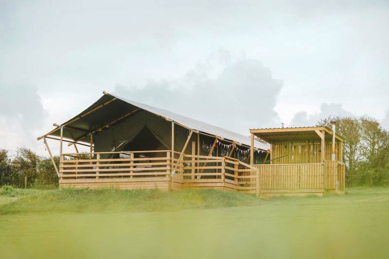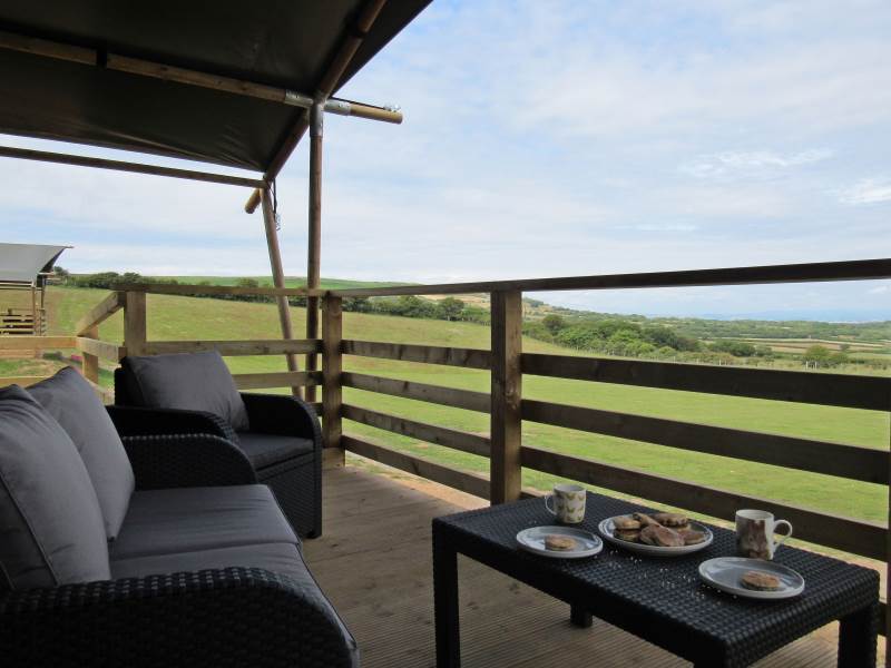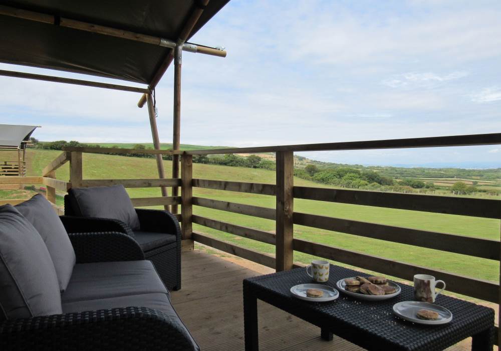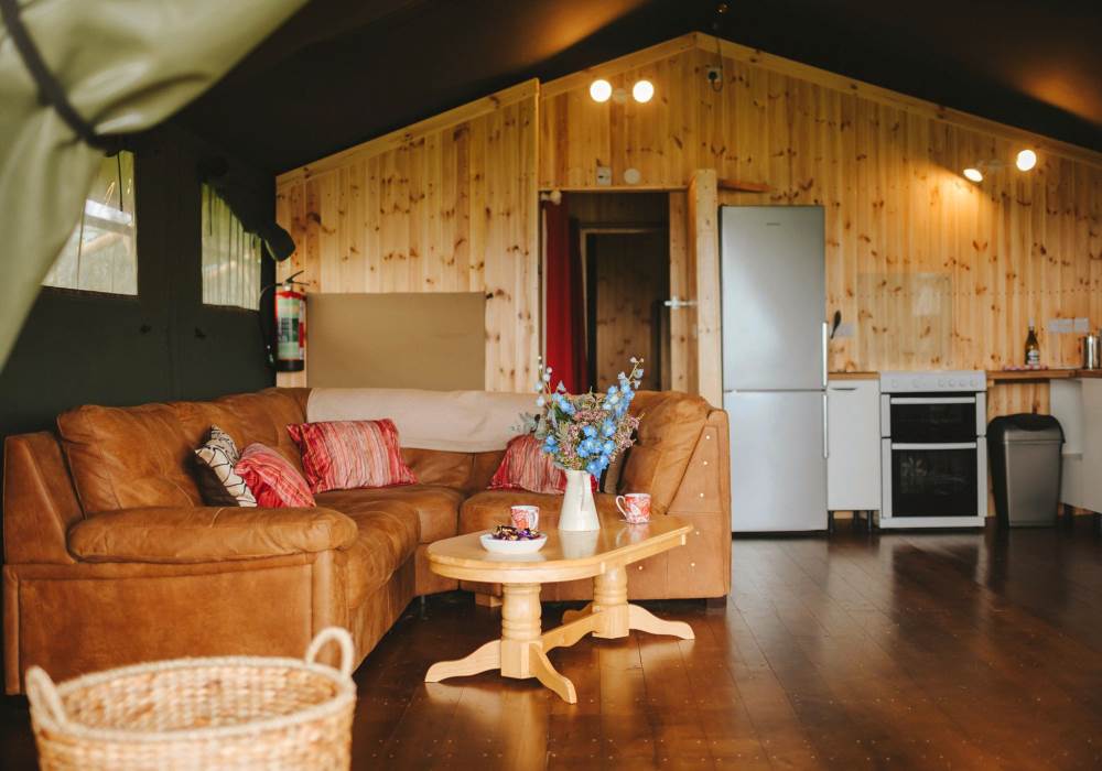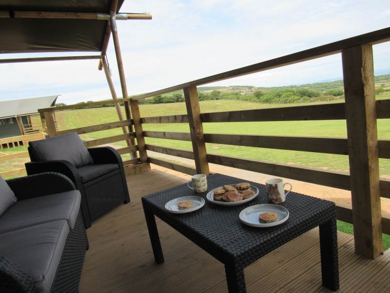 Whitford is one of our well-equipped Glamping tents. each tent has electricity, a fridge freezer, full-size electric stove, log burner, with logs to start you off. The field is very peaceful and the perfect place to relax and unwind, switch off your phone and just enjoy the fresh air and the open space.