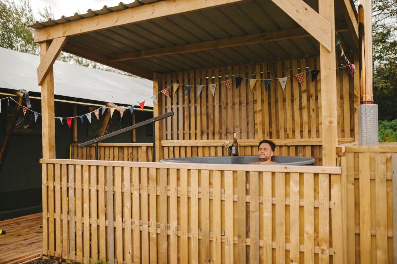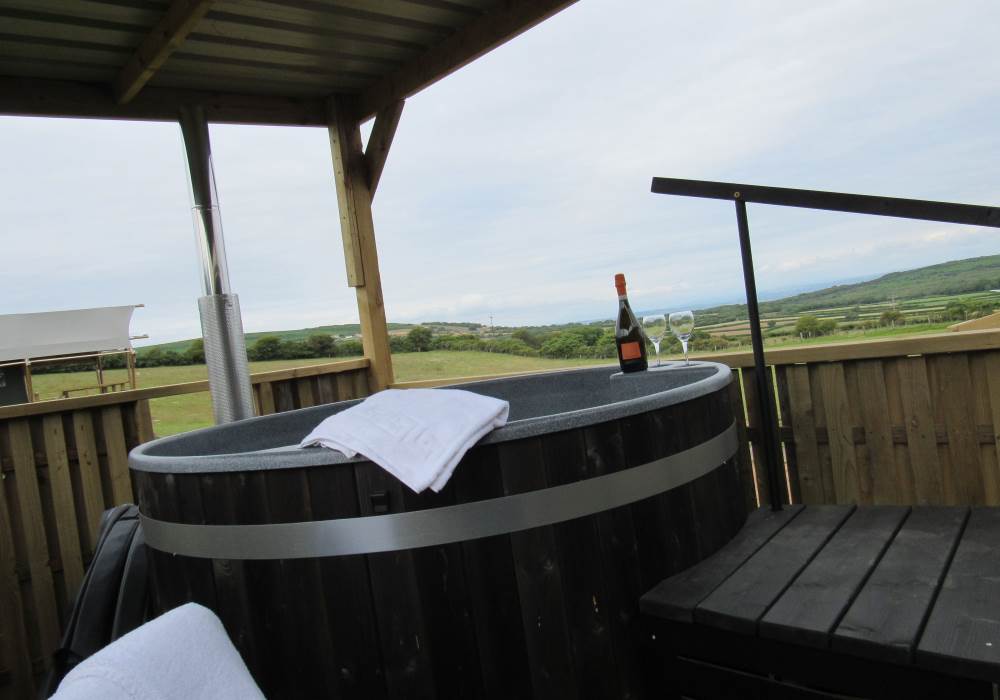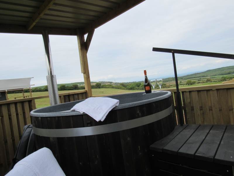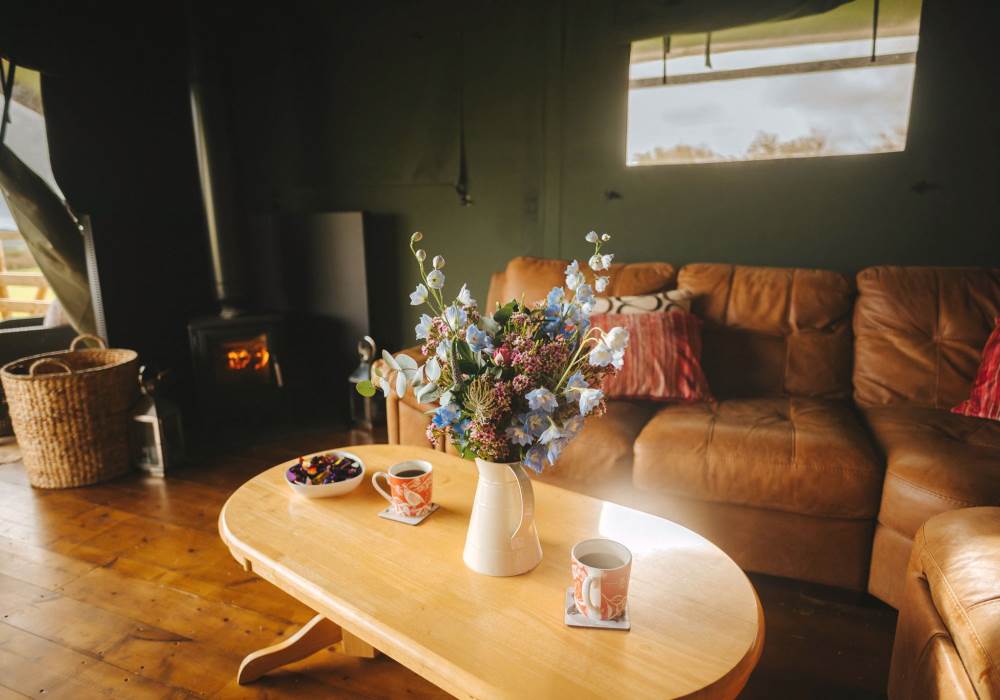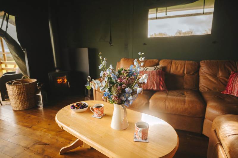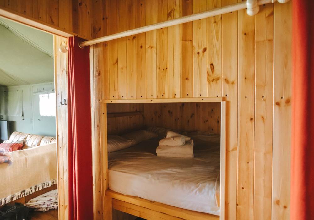 Whitford is one of our well-equipped Glamping tents. each tent has electricity, a fridge freezer, full-size electric stove, log burner, with logs to start you off. The field is very peaceful and the perfect place to relax and unwind, switch off your phone and just enjoy the fresh air and the open space.