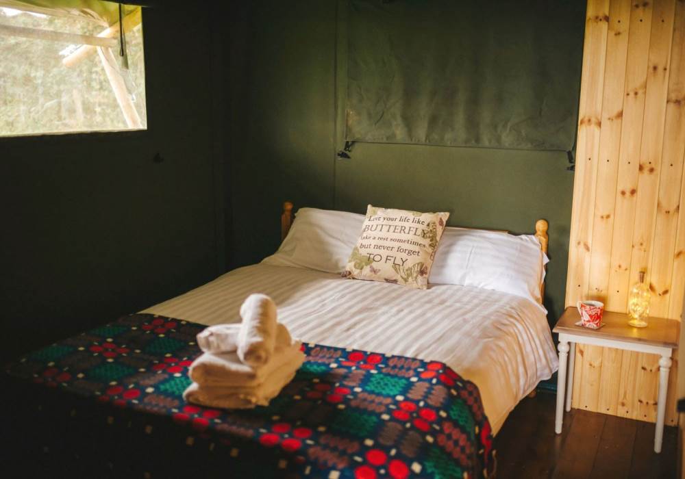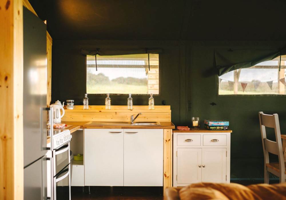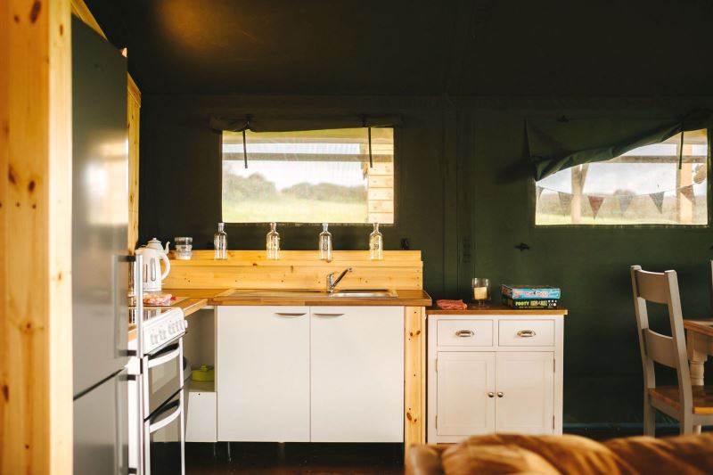 Worm's Head is one of our well-equipped Glamping tents. each tent has electricity, a fridge freezer, full-size electric stove, log burner, with logs to start you off. The field is very peaceful and the perfect place to relax and unwind, switch off your phone and just enjoy the fresh air and the open space.