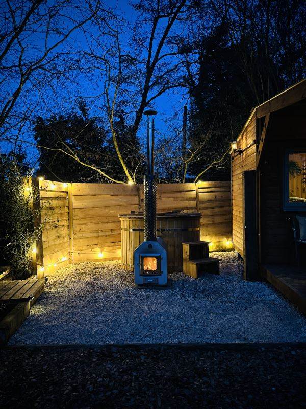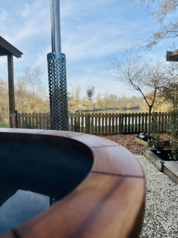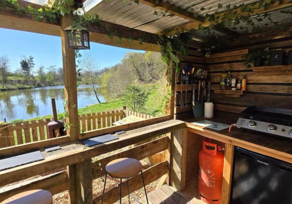 Outside, you'll find an outdoor kitchen and gas BBQ area, complete with outdoor fridge - perfect for storing your BBQ food and beers! But wait, there's more.... you'll also find your log-fired hot tub nestled alongside the cabin, with stunning views straight down the length of the lake - an extra feature here is our favourite festoon lighting, which adds to the ambience after dark.