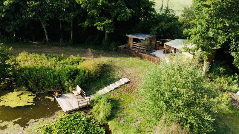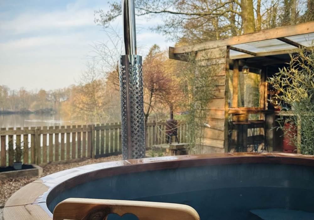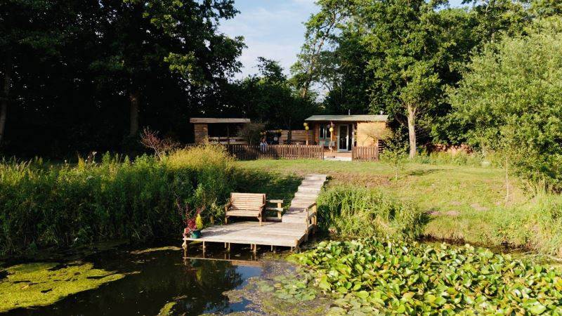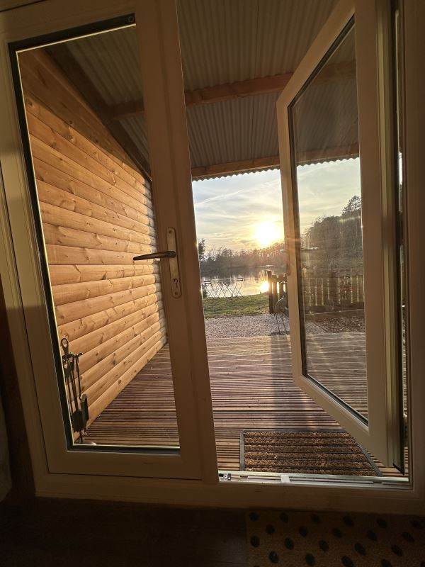 This beautifully constructed wooden cabin is situated at the foot of the main lake, which in our opinion, offers the best views of the lake and sunset on the whole site. The cabin is very close to the car park, so is easily accessible without a long walk, but still offers peaceful accommodation with beautiful views.