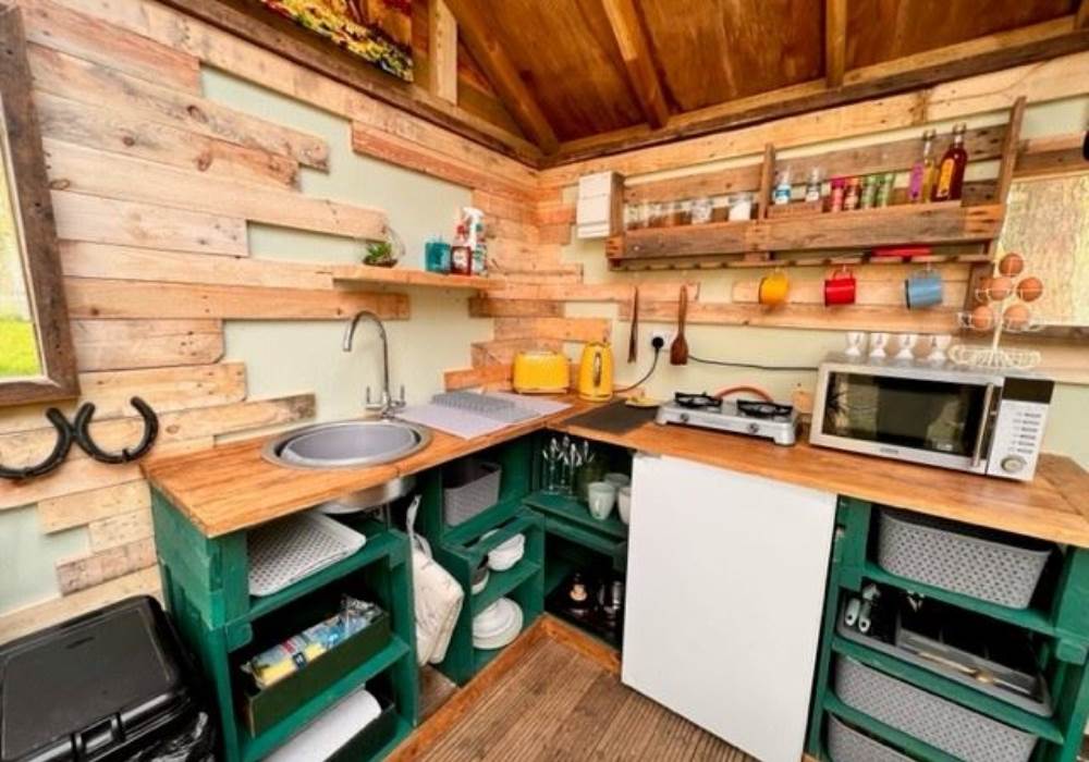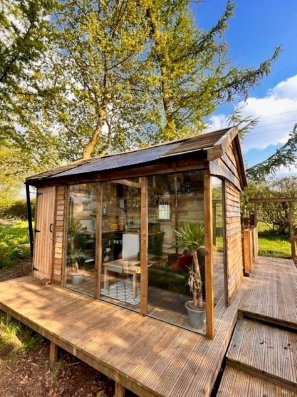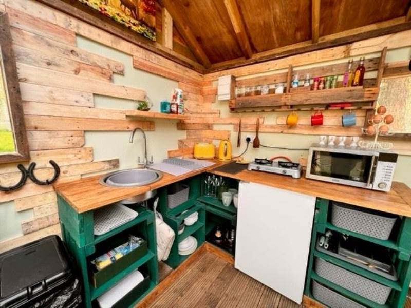 A further shack next to the Shepherd's Hut, which is accessed via raised decking, provides your own private toilet and shower room.