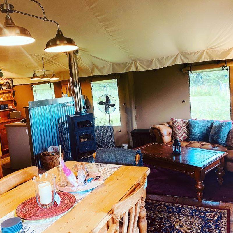 A great weekend had by two grandparents and two grandchildren, aged 9 and 10. We were kept lovely and warm by the log burner, electric blankets and lovely warm bedding. The setting of the safari tent, in a field with only one other tent, was great for the children to run around in and play in safety. Everything was spotlessly clean. There is so much more to say about accommodation that I feel I haven't done it justice in my review. It really was fantastic and I can't wait to visit again.