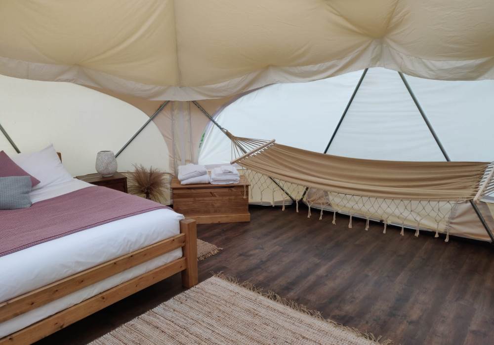 It holds a super comfortable super king size bed a double sofa bed and we are able to add a single bed too on request. Equipped with a hammock and a wood burner stove for those chilly nights.