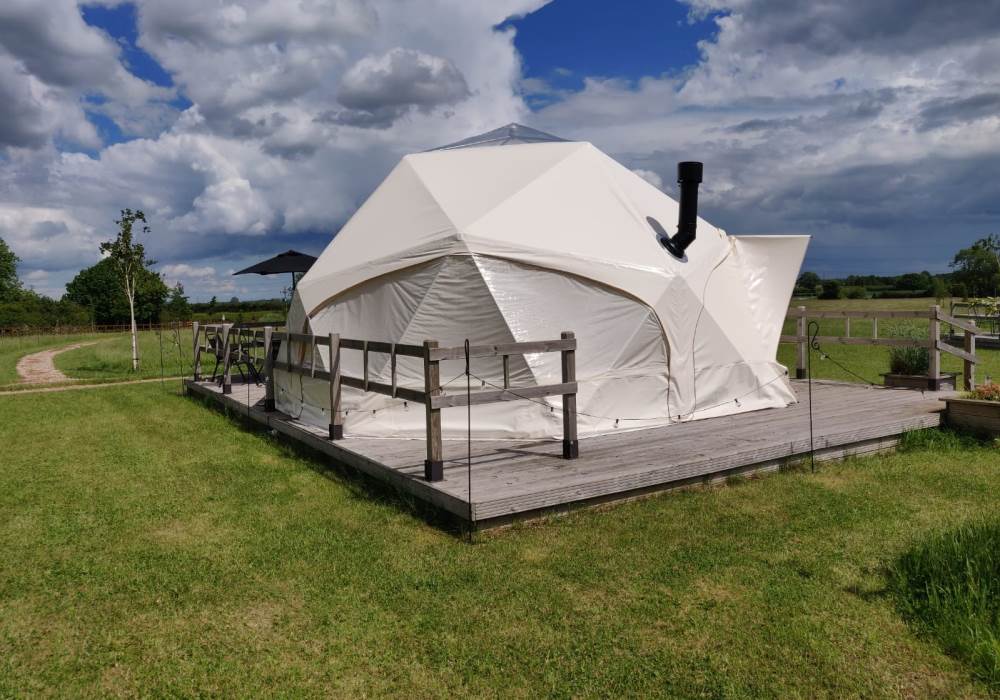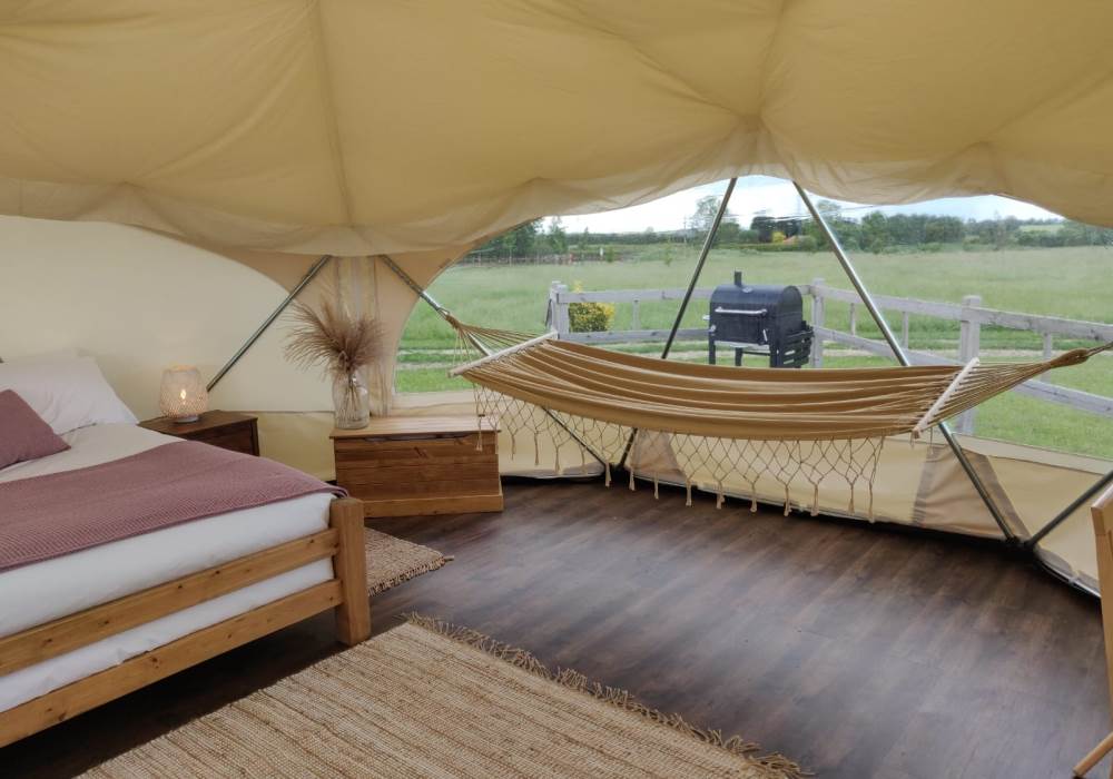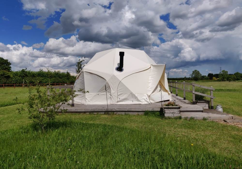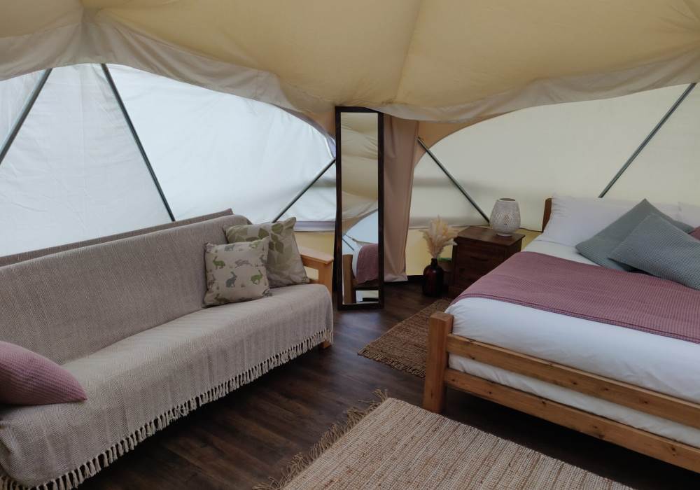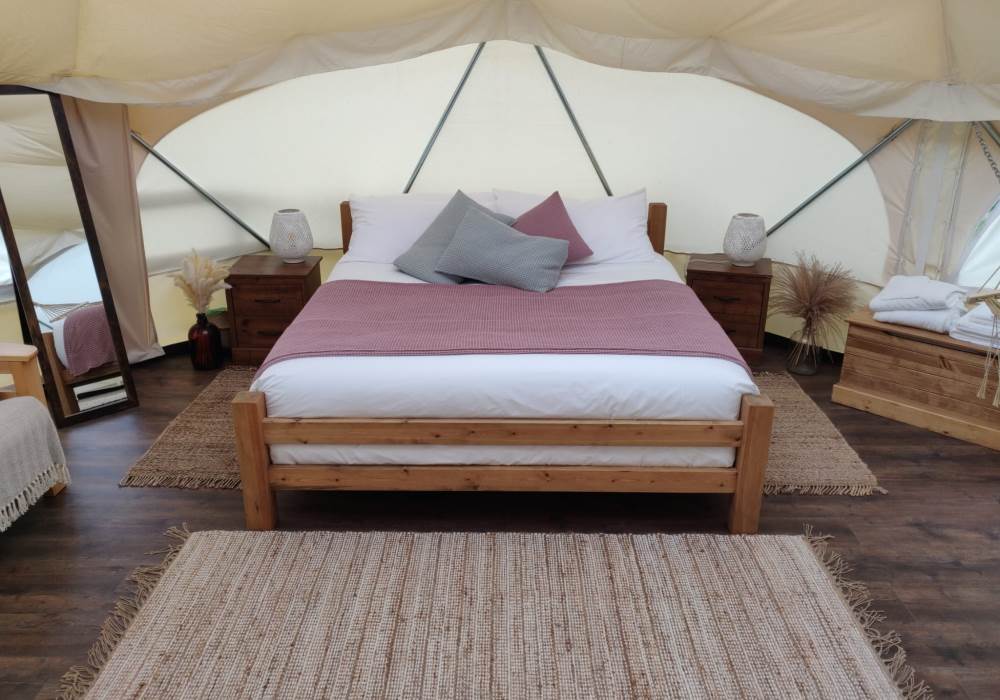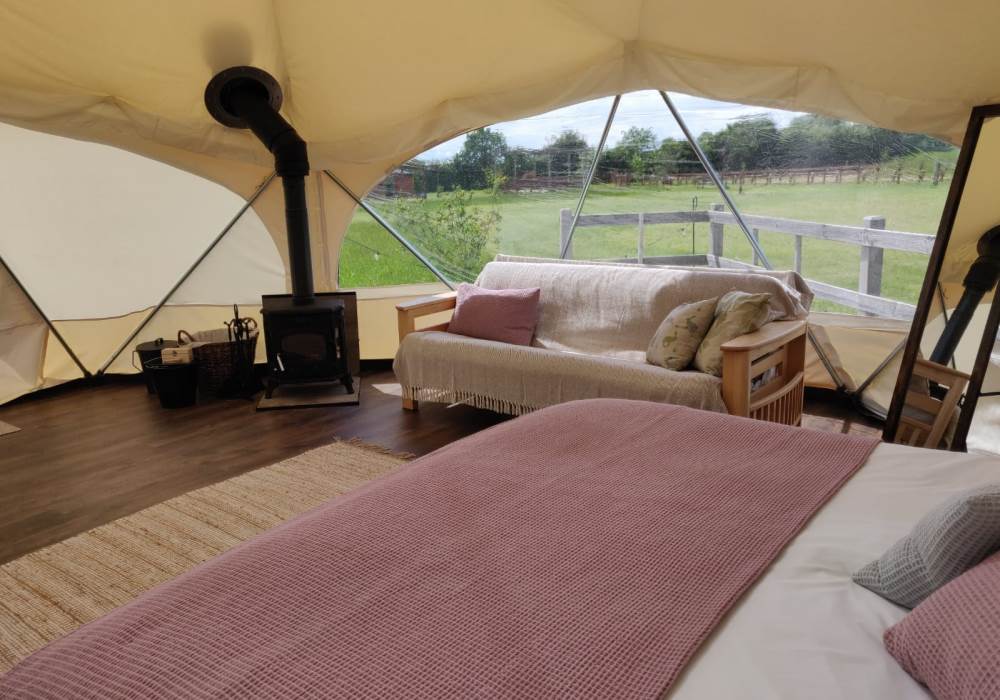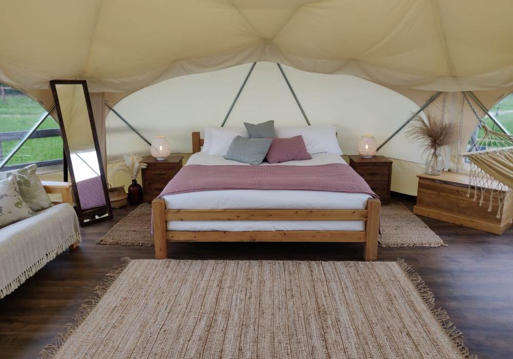 The Earth Yurt is our newest addition, its not a yurt but a very cool geo-dome. A beautifully spacious 6m pod with beautifully designed to feel like you are one with nature.