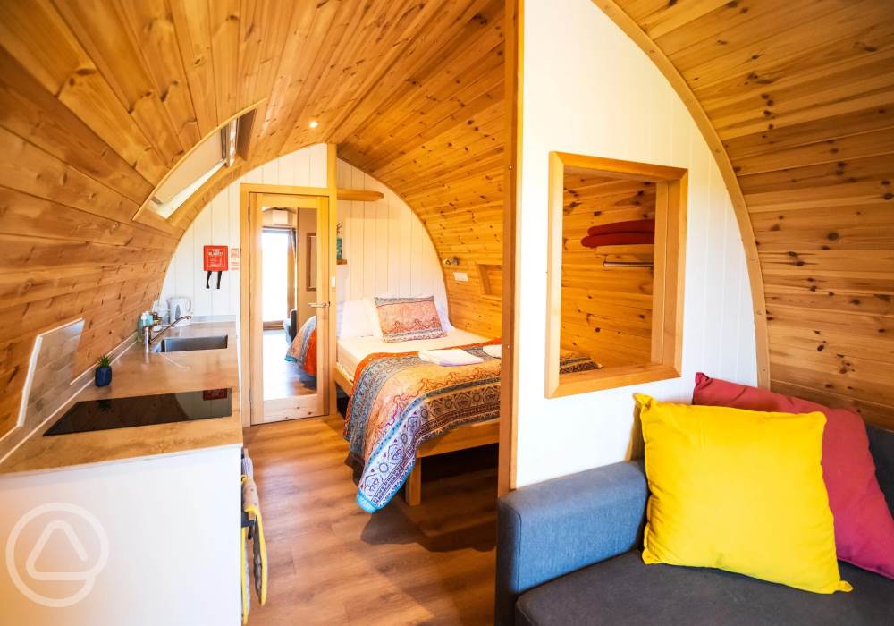Our 4 sleeper pods are ideal for couples who want a hide away with space for themselves or families with two children who are happy to share the comfy pull out sofa bed.