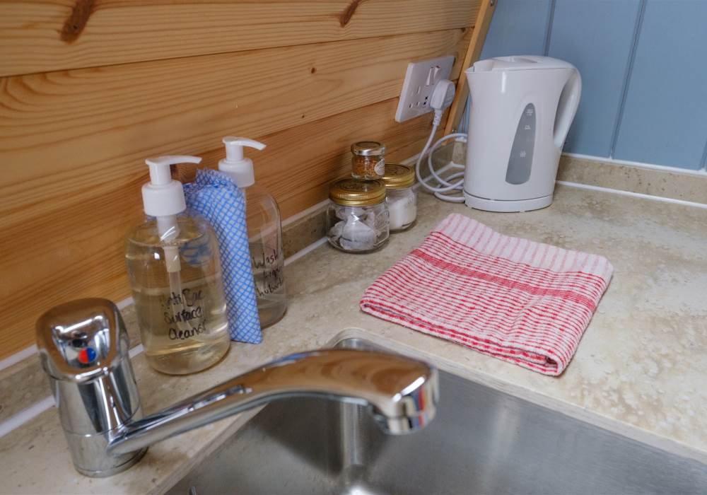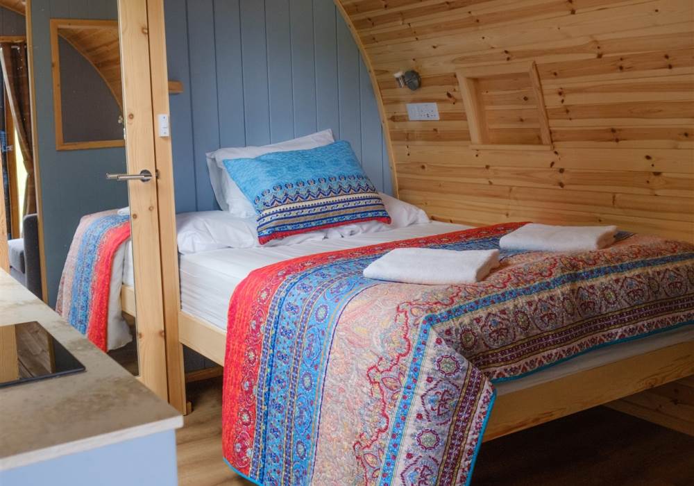 As with all our pods there is a separate shower room with toilet, kitchen area with good size fridge with freezer compartment, perfect if you are self catering, 2 ring induction hob and oven. We provide everything you need, basic cooking equipment, kettle, cafetière, crockery, cutlery and glassware.