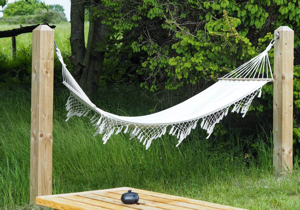 Outside each tent, there is a barbecue/fire pit, table & chairs, lounge chairs, and a hammock. You can either bring your own gas stove or hire one from us. Our Tents are all decorated with bunting and twinkling fairy lights. Each tent (family) will have their own indoor bathroom toilet/double sink/heated shower located close by your tent.