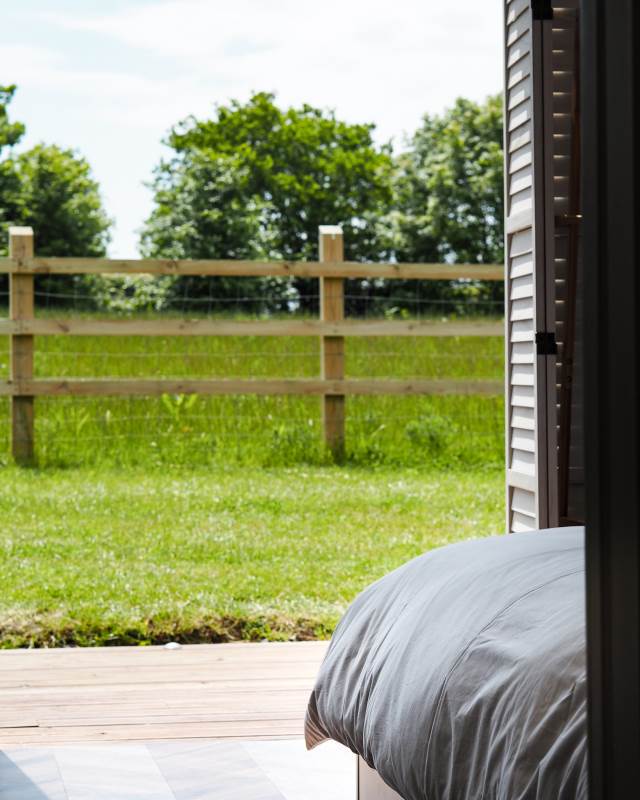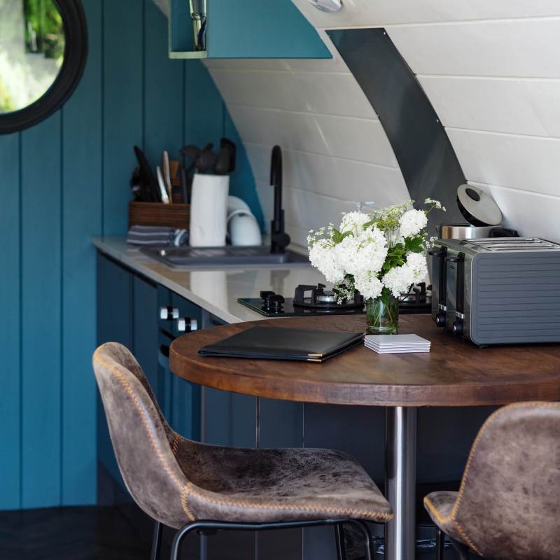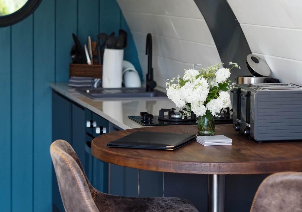 You’ll be impressed by their construction. Designed and built exclusively for North Norfolk Glamping to the highest specifications; this pod is cosy and welcoming. All you need to do is open the unique round door, walk inside, and make yourself at home. Just bring along your clothes and food because everything else is provided for you.