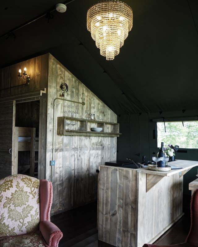 None of the Safari Tents share facilities, so you will only meet your neighbours if you wander over and say hello. Get ready for the sun to set through the trees so you can slide open the tub and steam away as the stars come out and the peace of the countryside soothes you from head to toe.