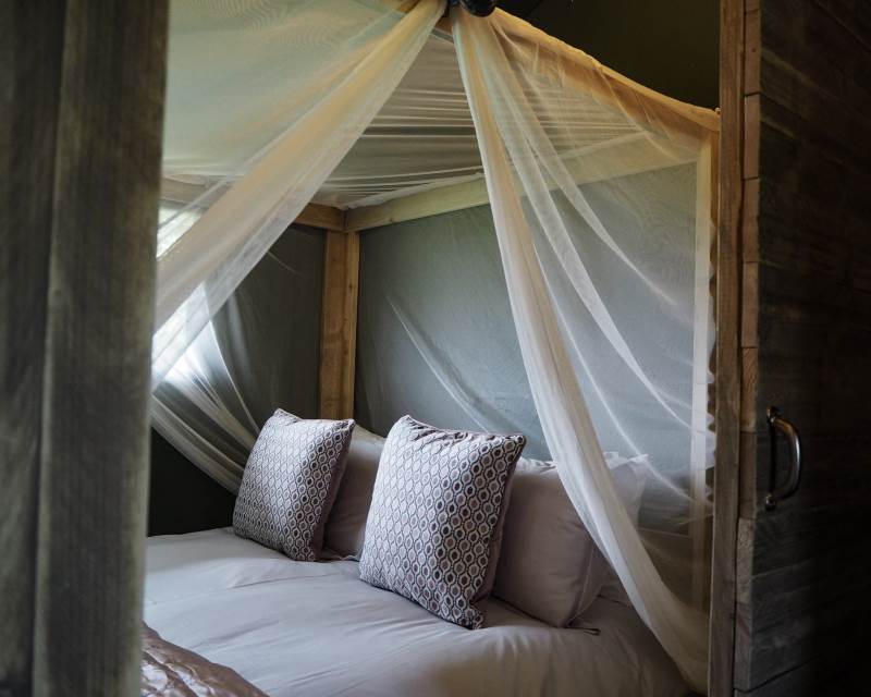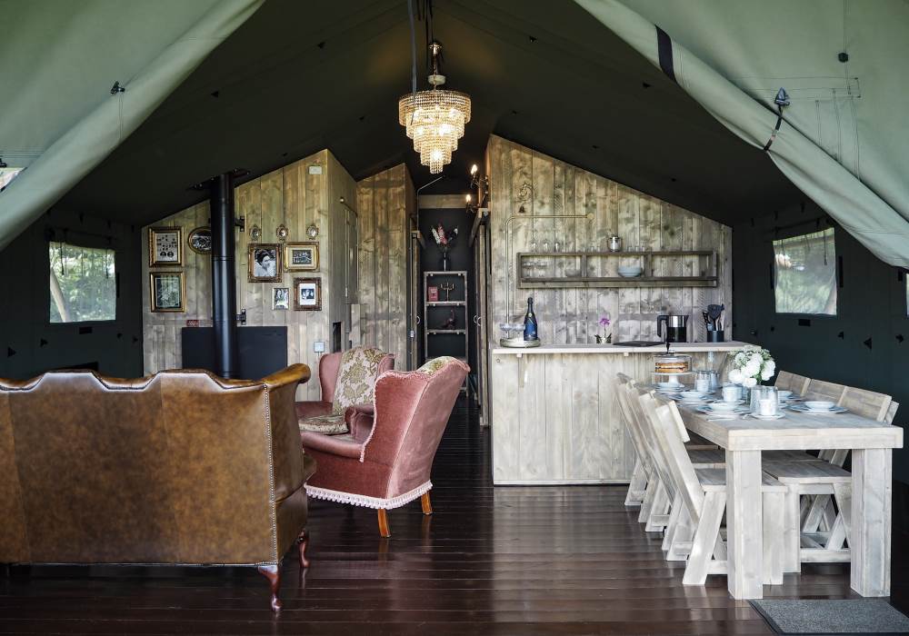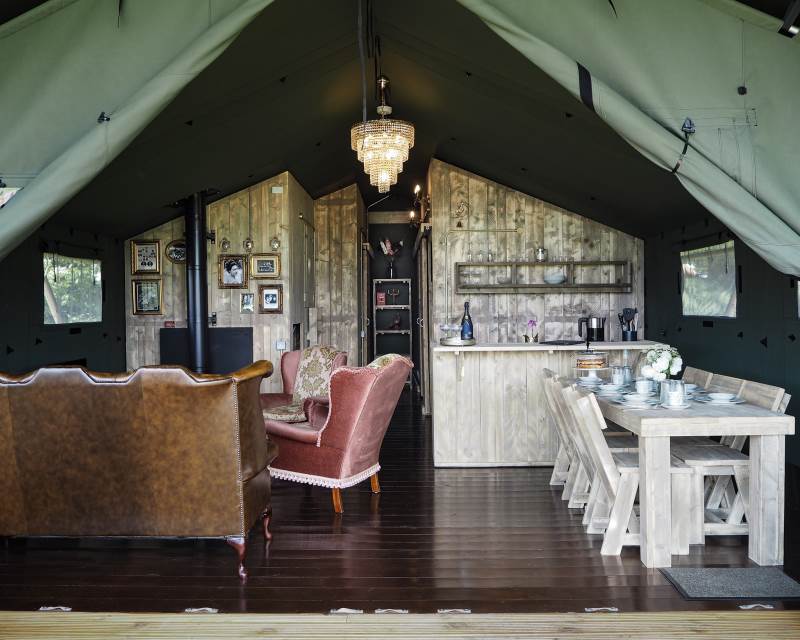 We have three safari tents including the Sandringham safari tent, each individually designed inside with simple but sumptuous style, sleeping up to 6 people max comfortably.