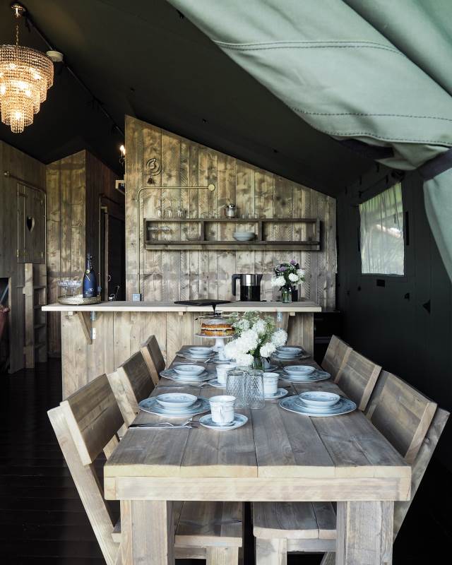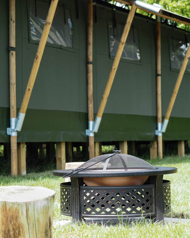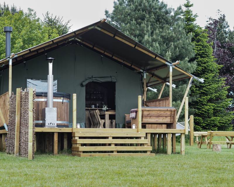 Outside each Safari Tent, there is a decked area with outdoor seating, hammocks, and a BBQ fire pit- which is perfect for roasting marshmallows and al fresco dining in your own private area. All Safari Tents have a log-fired hot tub (the heat is generated through a log burner for an extremely authentic and luxurious experience).