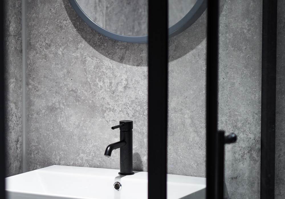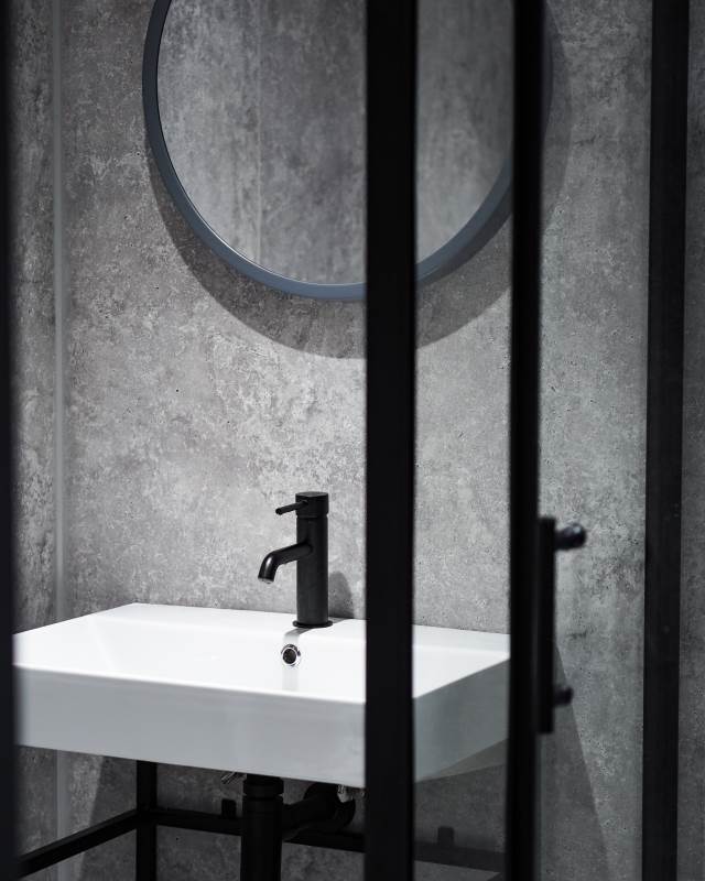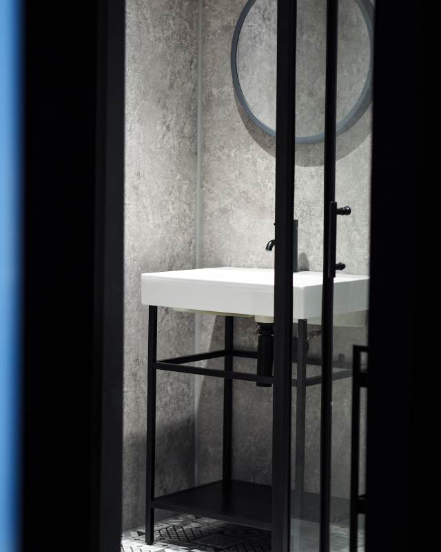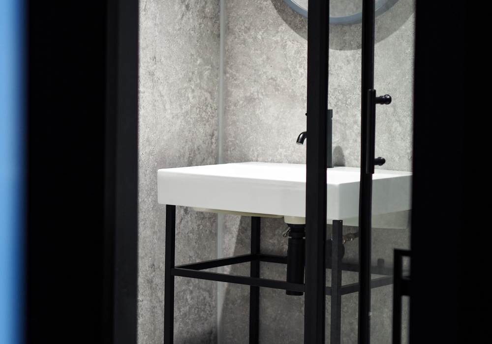 • Internal Bathroom with heated shower, vanity unit, and toilet