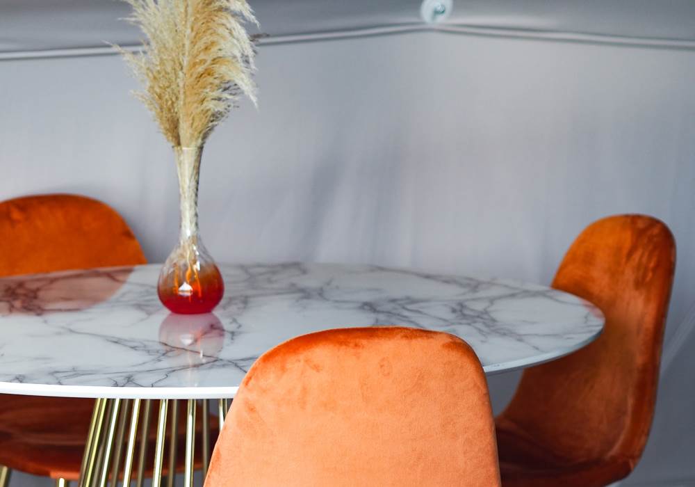 • Sofa, dining table and chairs