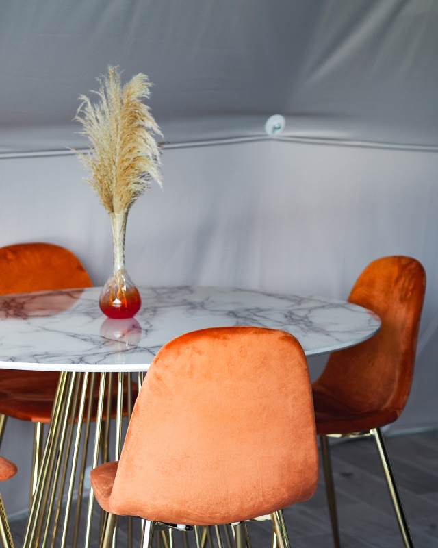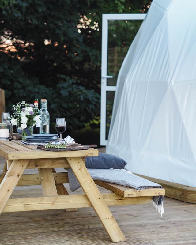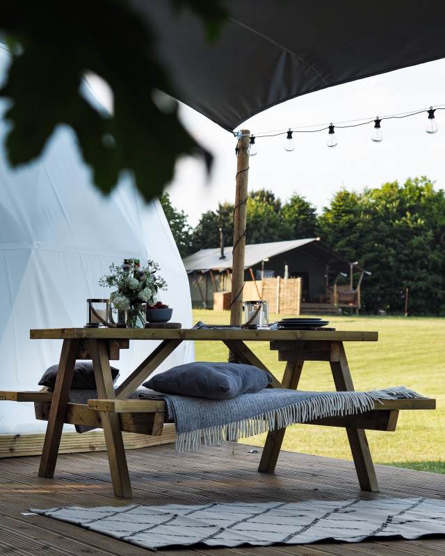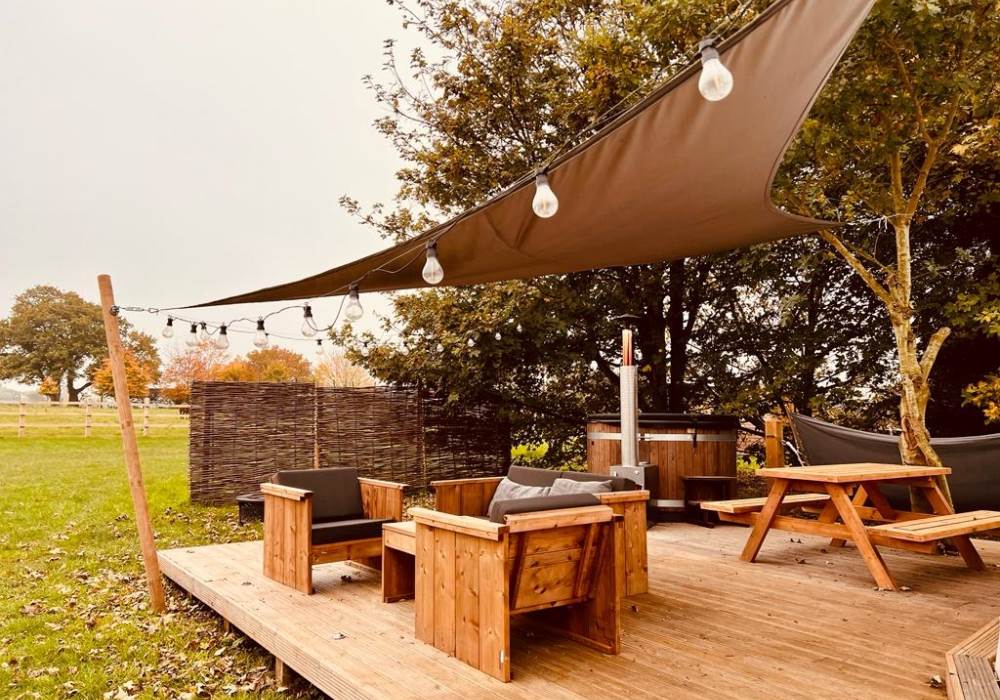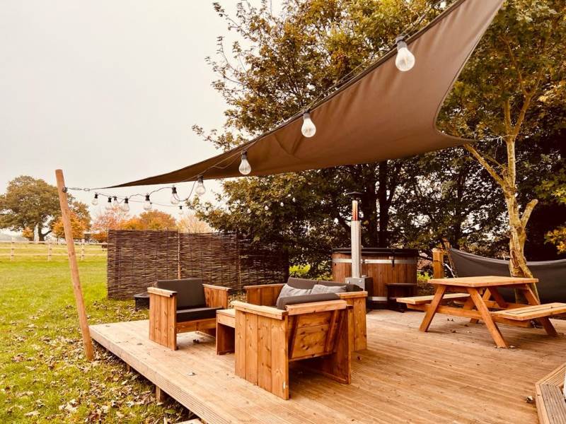 Outside the Stargazing Dome there is a decked area with outdoor seating, wood-fired hot tub, BBQ/fire pit, hammock, and sail cover. Perfect for relaxing with your favourite food, drink, and loved one. North Norfolk has fantastic views of the dark skies and landscapes. From the Star Gazer you can peacefully watch away as dusk falls, the barn owls begin to hunt, and then the stars come out in all their glory