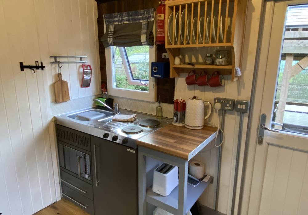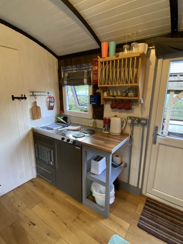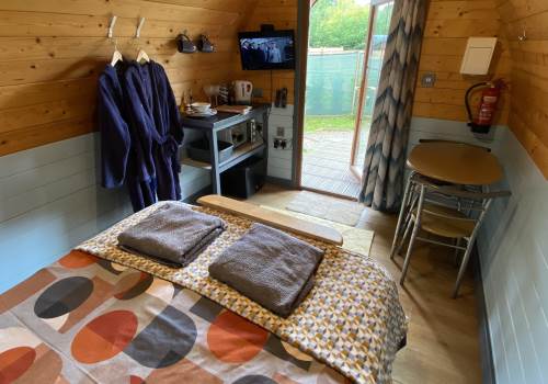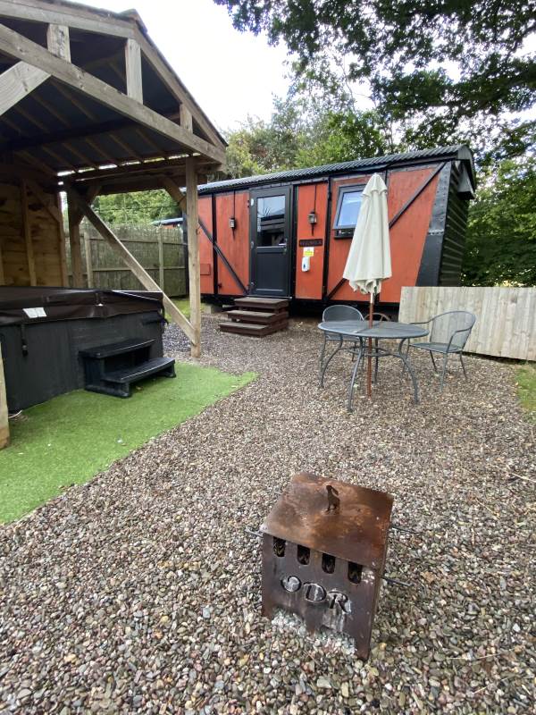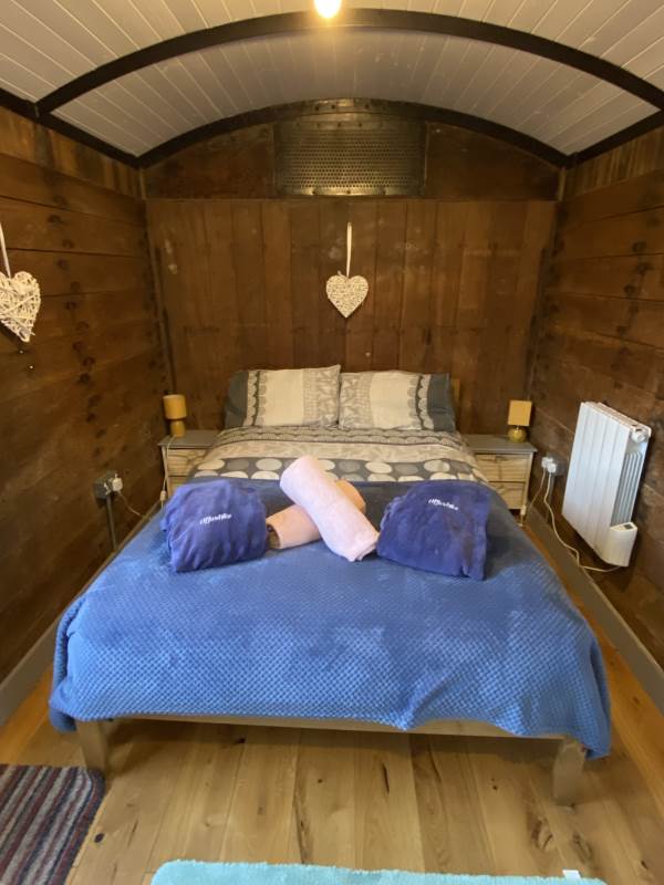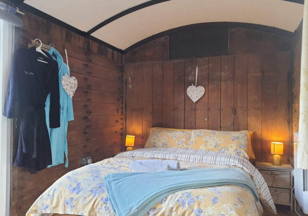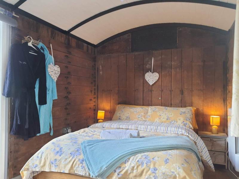 The carriages have a double bed with an optional single futon sofa bed to give more space when just 2 guests. all bedding and towels are provided for guests. The kitchen is fully equipped with basin microwave kettle fridge and toaster, all pots pans crockery cutlery and cups including plastic for use in the hot tub.