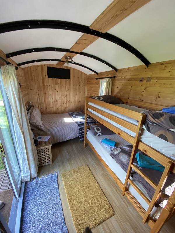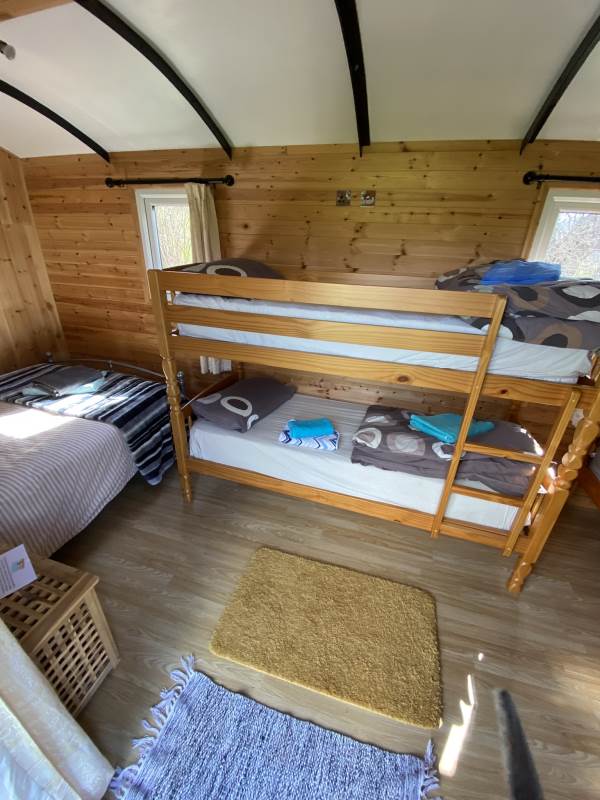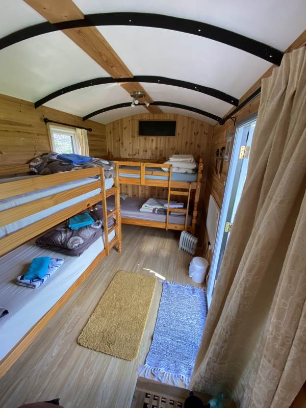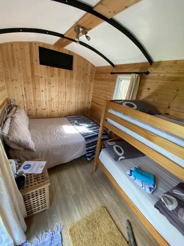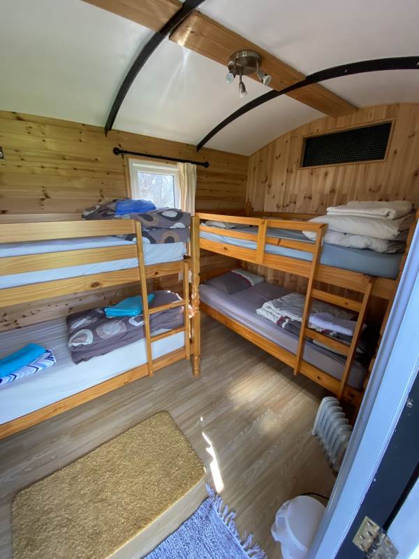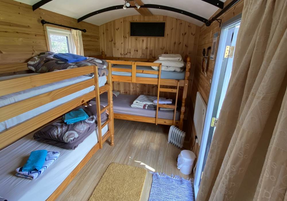 The carriage has a double bed with 2 bunk beds sleeping up to 6 guests. all bedding and towels are provided for guests.