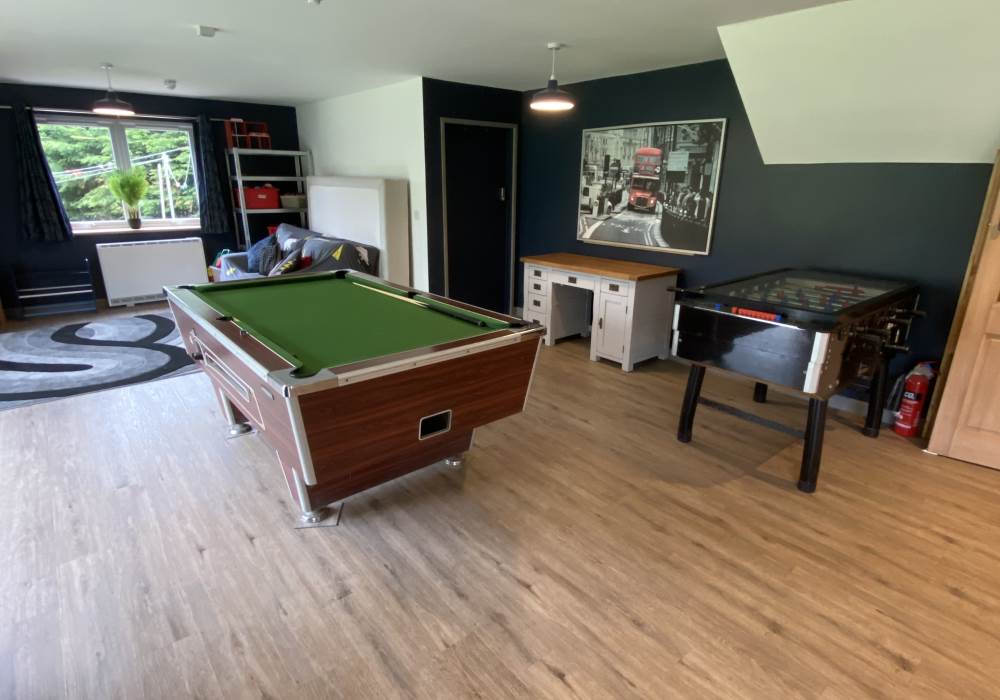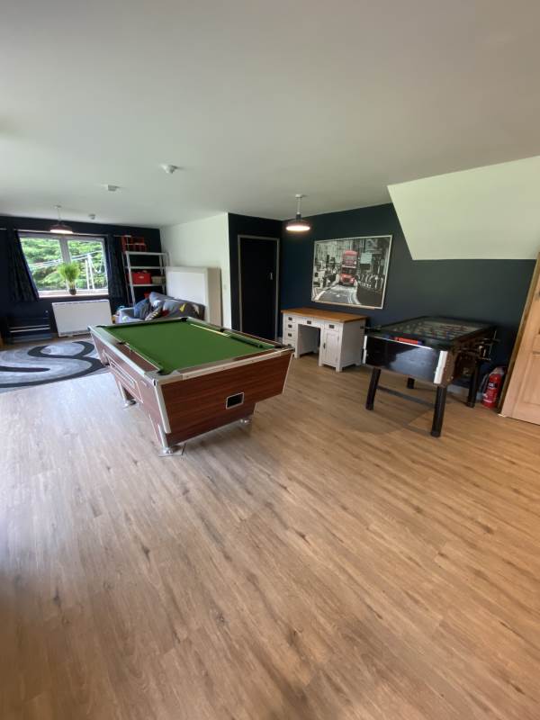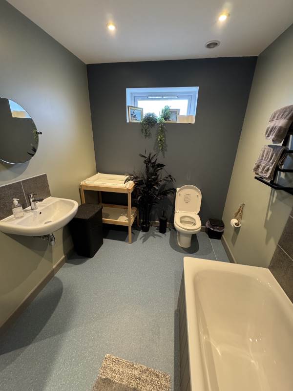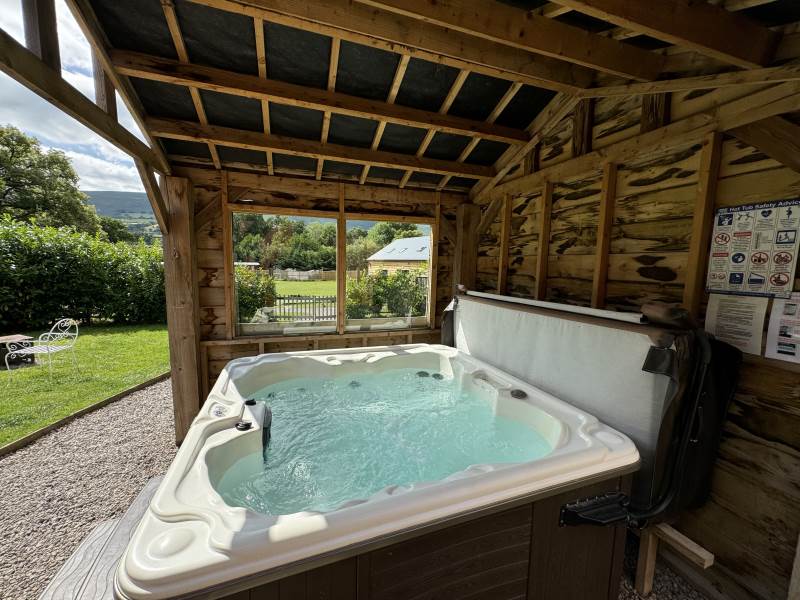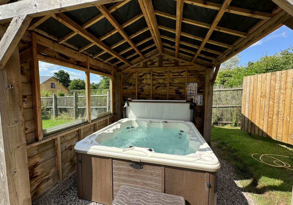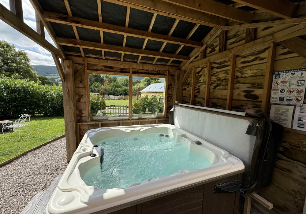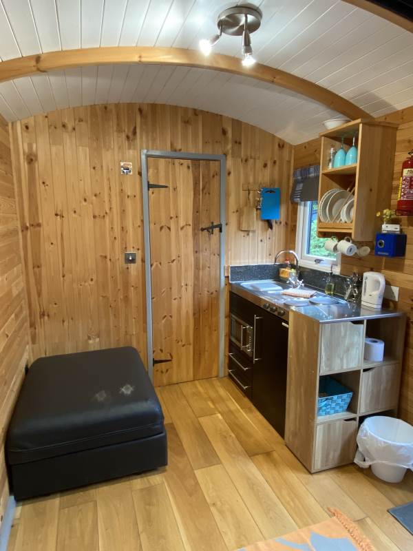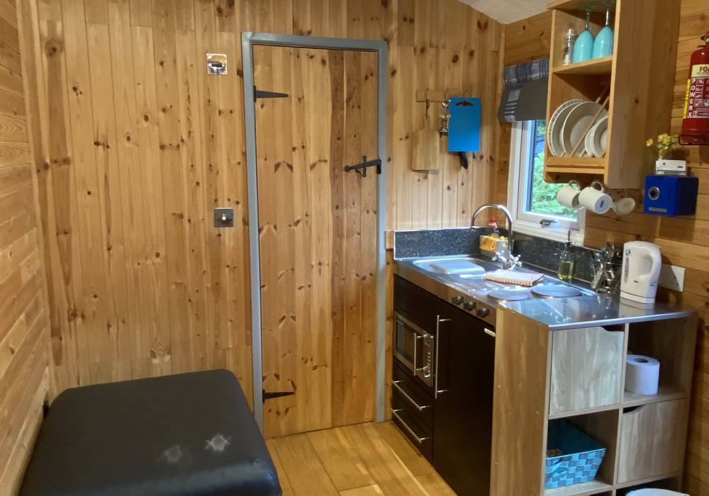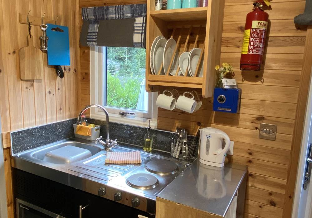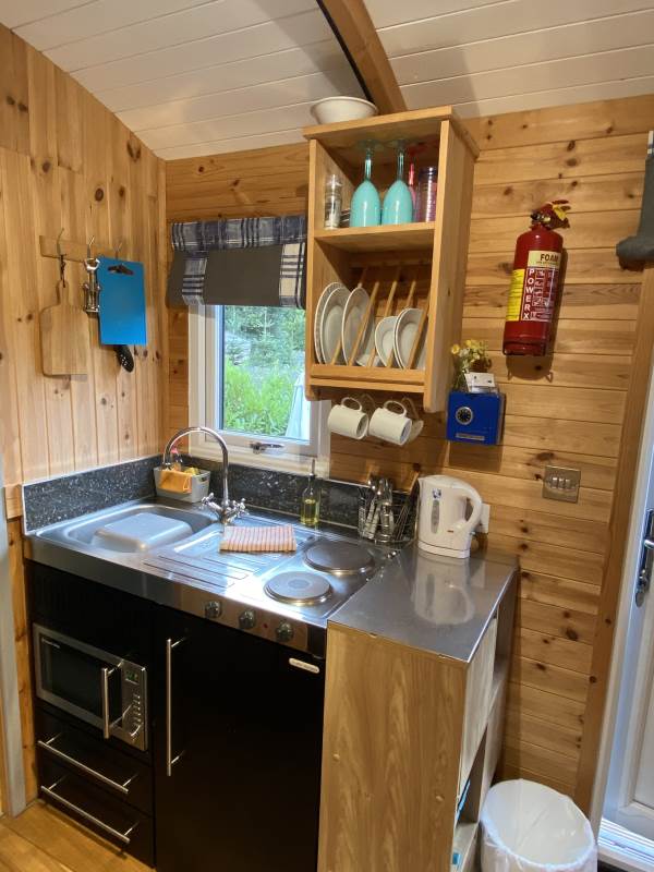 The kitchen is fully equipped with basin microwave kettle fridge and toaster, all pots pans crockery cutlery and cups including plastic for use in the hot tub.