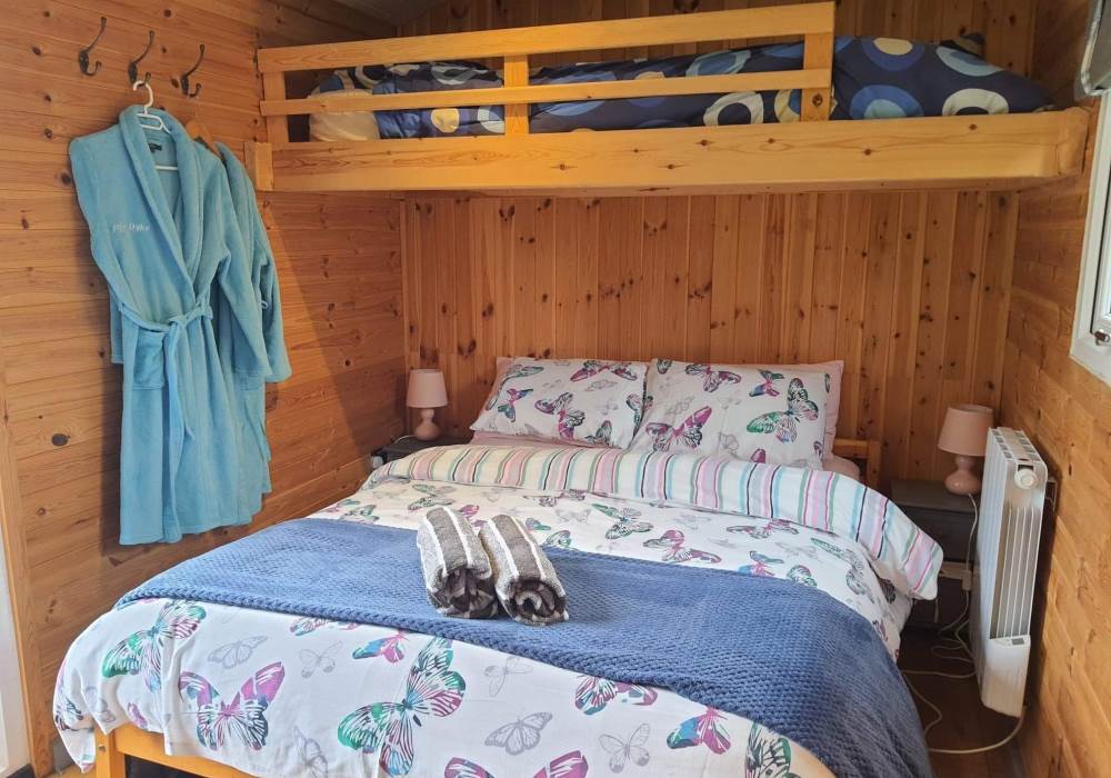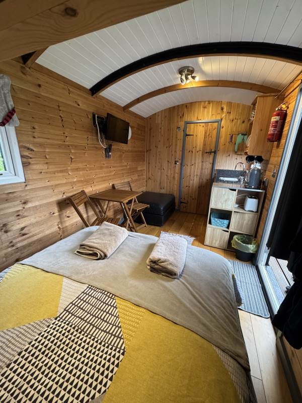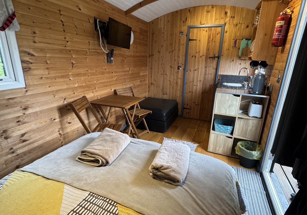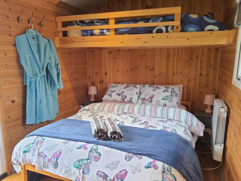 The carriages have a double bed with a high single sleeper over the top with an optional single futon sofa bed to give more space when just 2 guests. all bedding and towels are provided for guests.