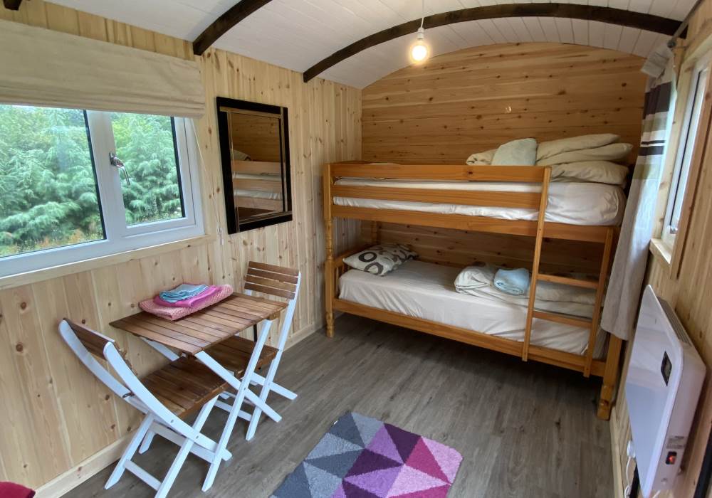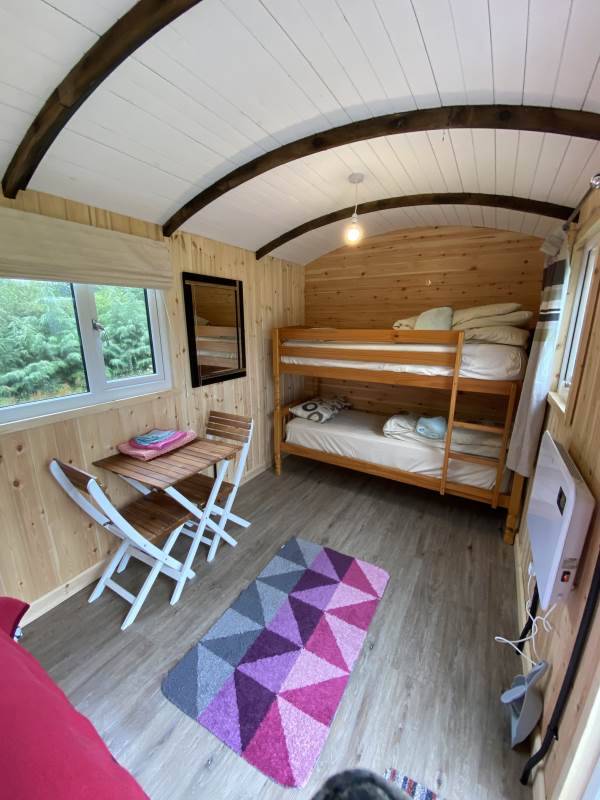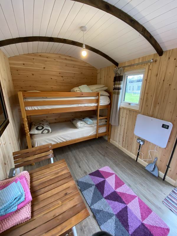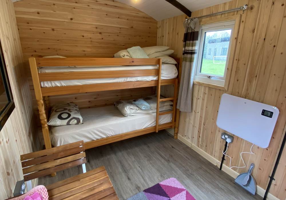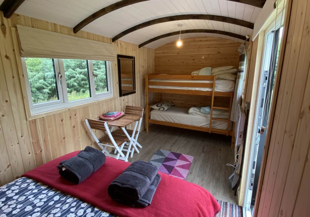 The carriage has a double bed with 1 bunk beds sleeping up to 4 guests. all bedding and towels are provided for guests.