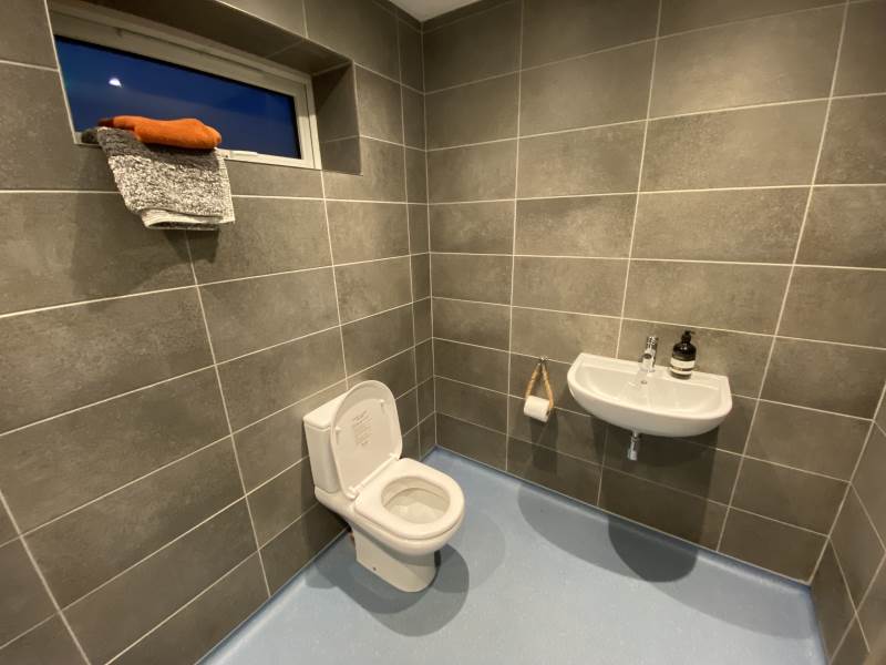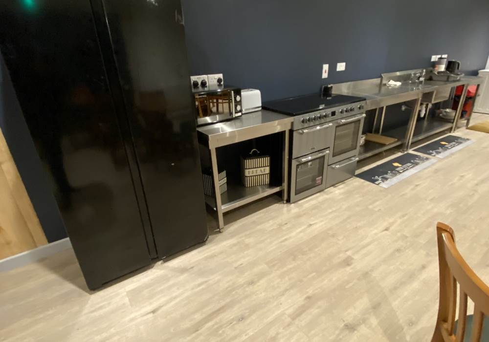 The communal kitchen is fully equipped with basin microwave kettle fridge and toaster, all pots pans crockery cutlery and cups.