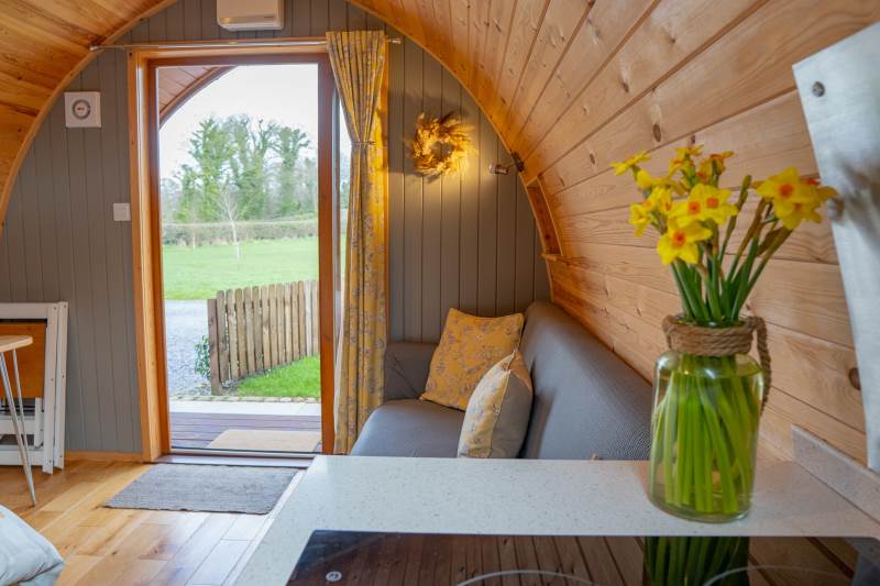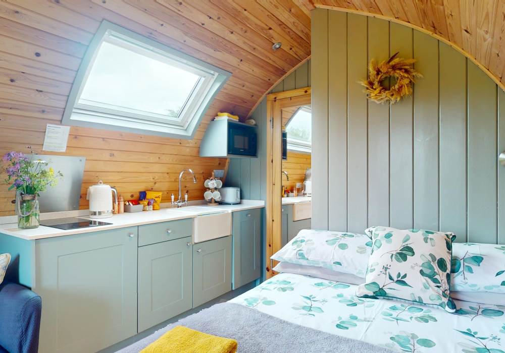 The pod is fully insulated with under floor heating to keep you extra cosy in the cooler evenings or winter months. There is a television and wi-fi will be available.