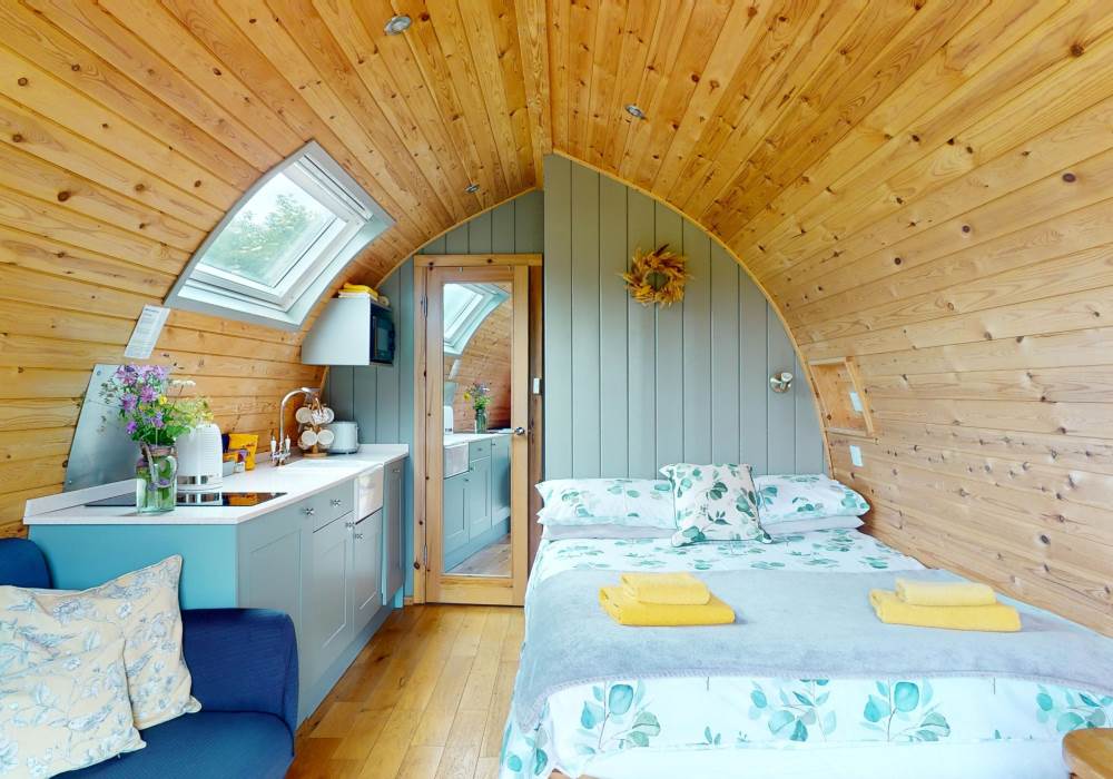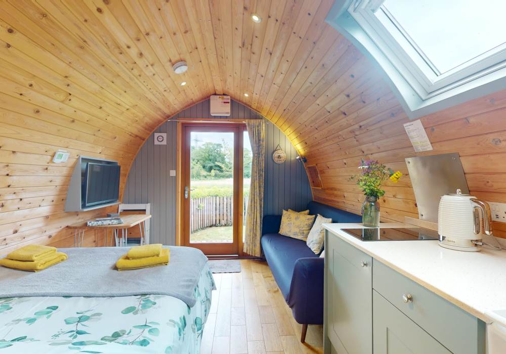 The pod is fully insulated with under floor heating to keep you extra cosy in the cooler evenings or winter months. There is a television and wi-fi will be available.