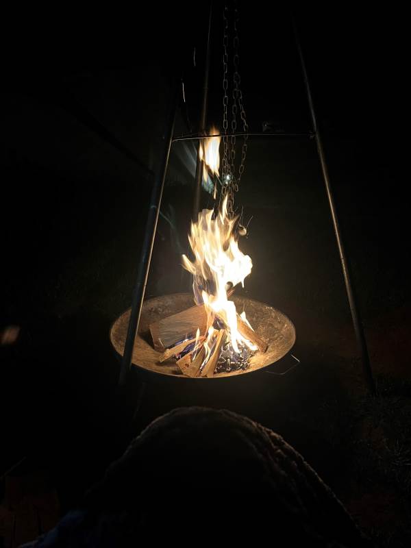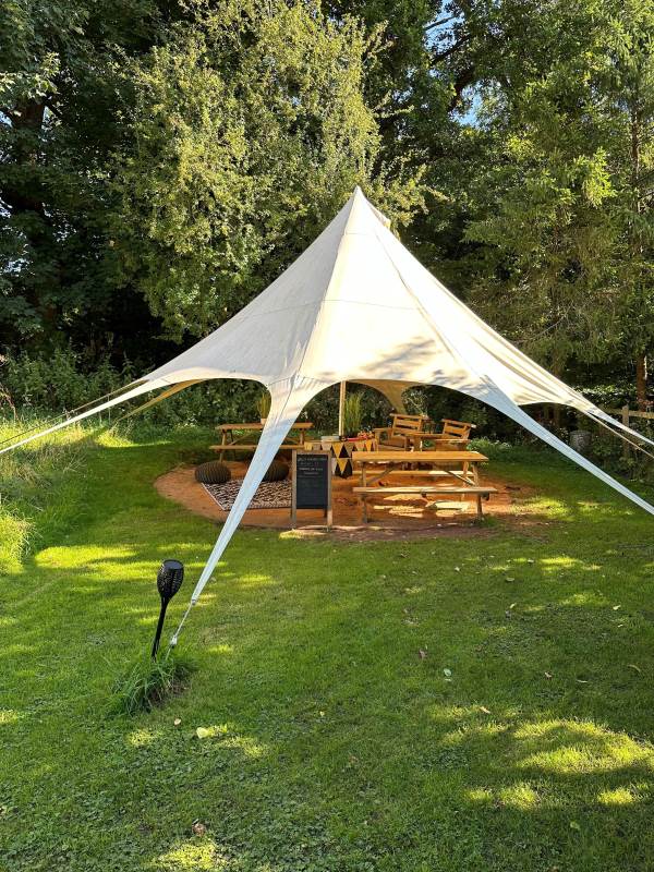 Outside you have a private seating area with comfy chairs and table, a hammock and wood fired stove to boil a kettle or cook breakfast on. To keep you warm and cosy on the cooler evenings, each tent has a fire pit with hanging grill for that essential BBQ.