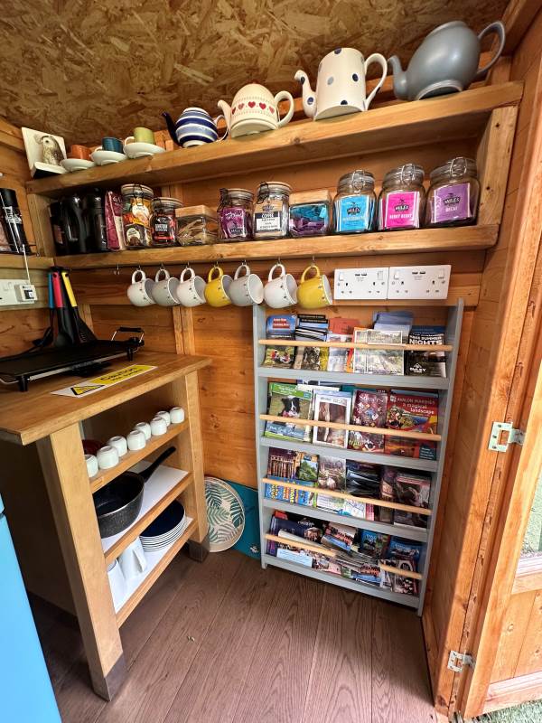 Complimentary Tea, coffee etc are provided in the shared 'Cheats Kitchen' where you will find the electric kettle, toaster, fridge freezer, microwave, grill and extra charging points for phones etc. There is also a selection of indoor & outdoor games for those with a competitive nature.