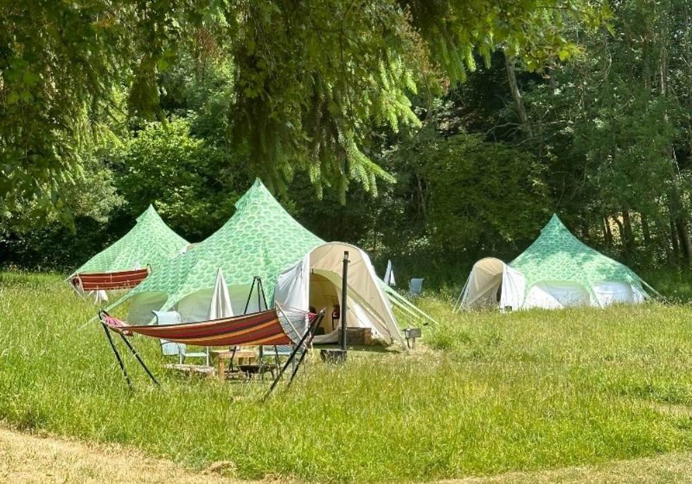 Outside you have a private seating area with comfy chairs and table, a hammock and wood fired stove to boil a kettle or cook breakfast on. To keep you warm and cosy on the cooler evenings, each tent has a fire pit with hanging grill for that essential BBQ.