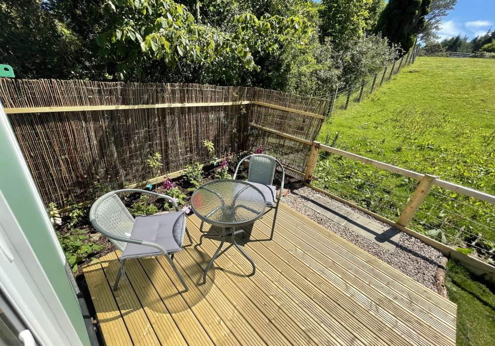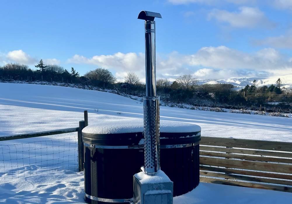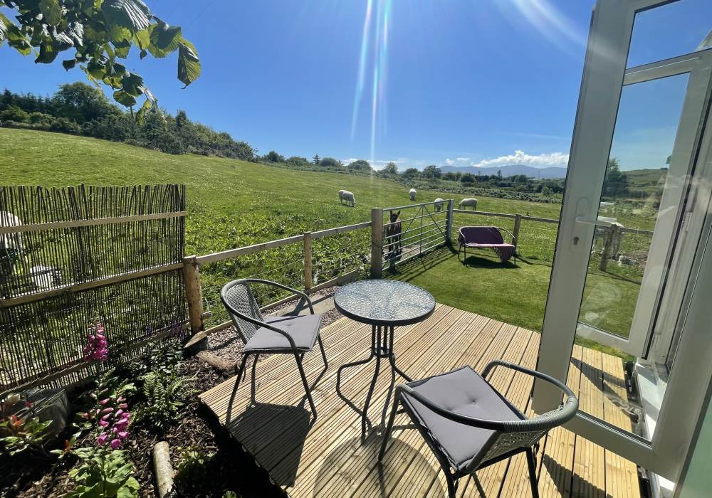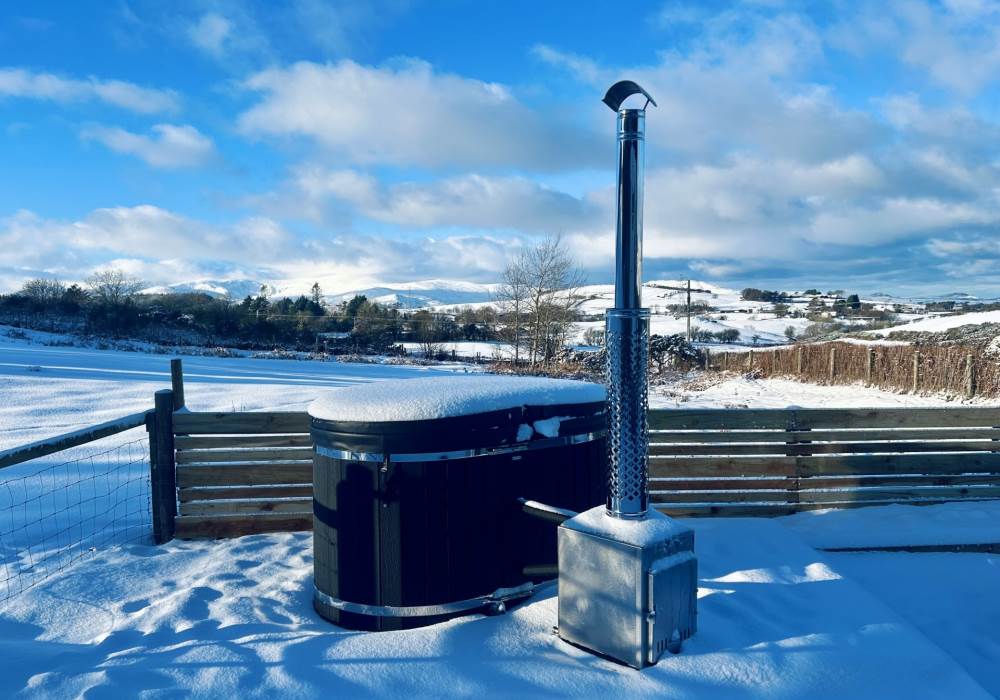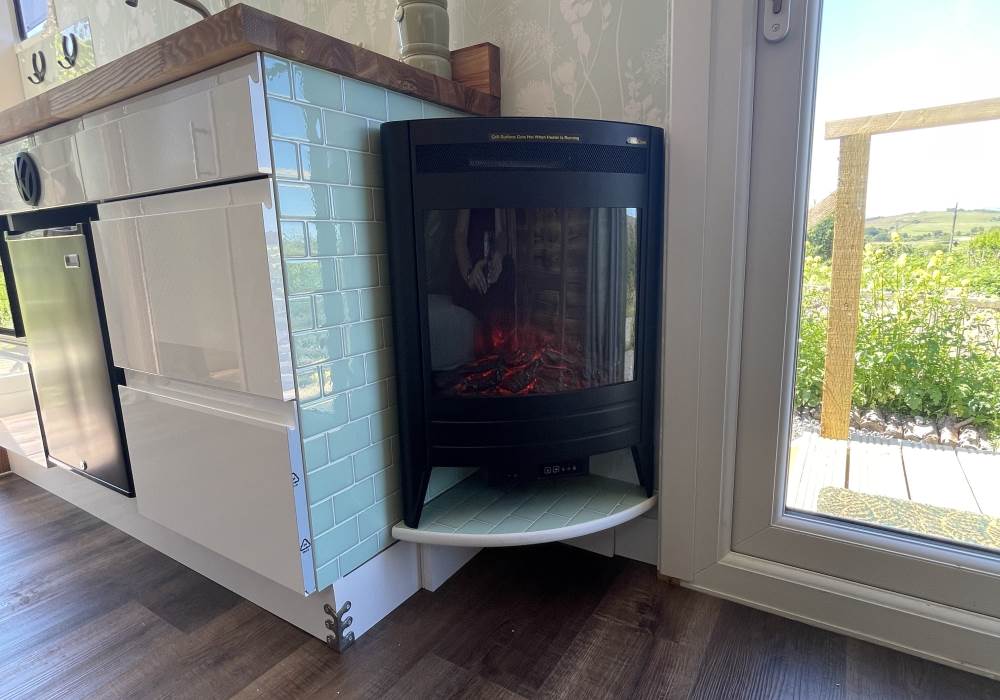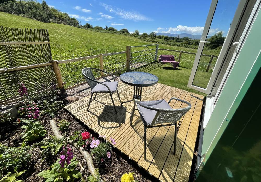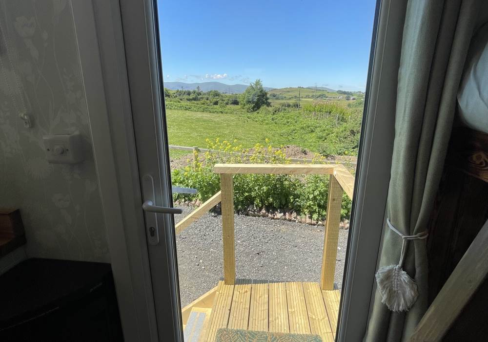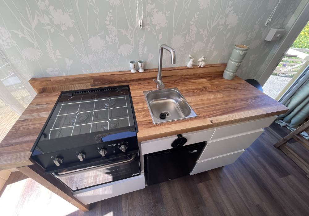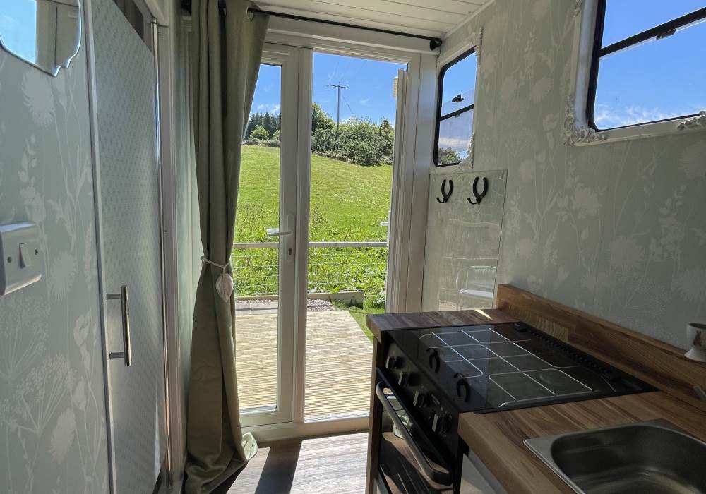 Fern is our lovingly comfy converted 1994 Volkswagen horsebox with a private hot tub, set away from our main glampsite. She has her own gated entrance with a parking area, garden and decking over looking the alpaca paddock and mountains. She also has a newly installed private wood fuelled hot tub, the perfect place to sit and admire the glorious sunsets descend behind the mountain ranges. She sleeps 2 adults in a double bed (sorry no children) or if you need another bed, there is also a fold out small double sofa bed. She has a toilet, shower and kitchen with oven and fridge. Everything you need for a cosy getaway. Please be aware that there are steps to access the horsebox and also a ladder for the bed. Please take a look at the pictures of the bed area.