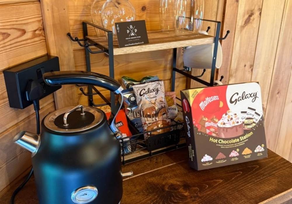 Step through the solid wooden door into a warm, inviting interior designed to feel snug and comforting year-round. Natural timber features and soft lighting create a cosy atmosphere, while the thoughtful layout ensures both comfort and practicality. The interior has been carefully styled to complement the cabin’s rustic exterior, offering a calm and relaxing environment to retreat to after a day exploring the countryside. Every detail has been considered to make the space feel welcoming, private, and effortlessly comfortable.