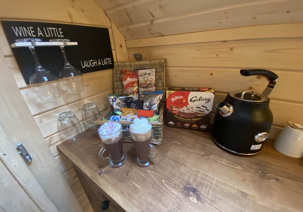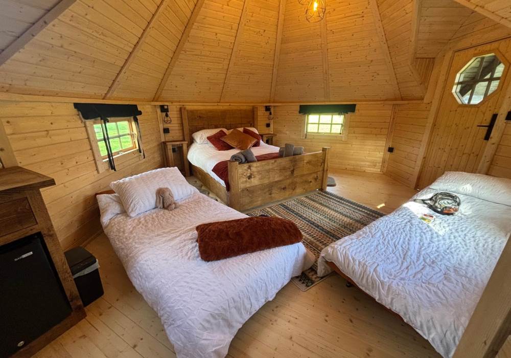 Step through the solid wooden door into a warm, inviting interior designed to feel snug and comforting year-round. Natural timber features and soft lighting create a cosy atmosphere, while the thoughtful layout ensures both comfort and practicality. The interior has been carefully styled to complement the cabin’s rustic exterior, offering a calm and relaxing environment to retreat to after a day exploring the countryside. Every detail has been considered to make the space feel welcoming, private, and effortlessly comfortable.