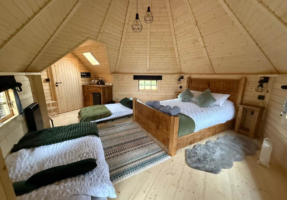 Step through the solid wooden door into a warm, inviting interior designed to feel snug and comforting year-round. Natural timber features and soft lighting create a cosy atmosphere, while the thoughtful layout ensures both comfort and practicality. The interior has been carefully styled to complement the cabin’s rustic exterior, offering a calm and relaxing environment to retreat to after a day exploring the countryside. Every detail has been considered to make the space feel welcoming, private, and effortlessly comfortable.