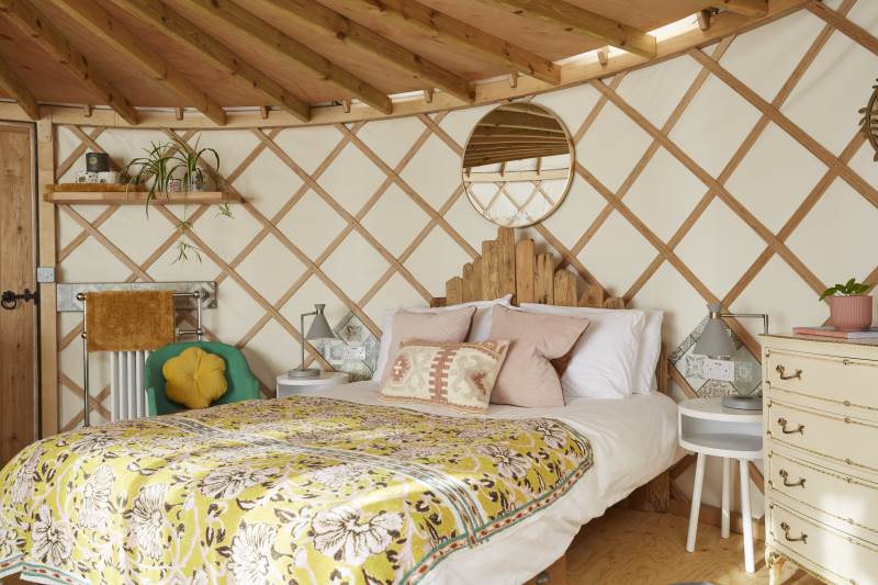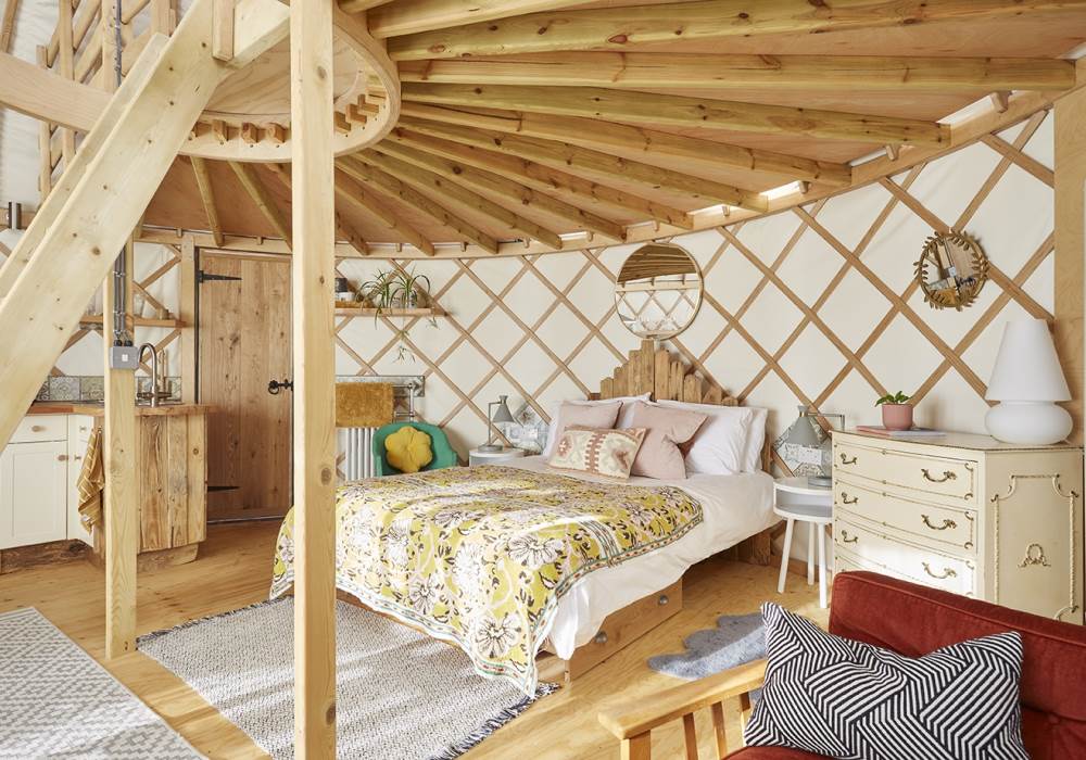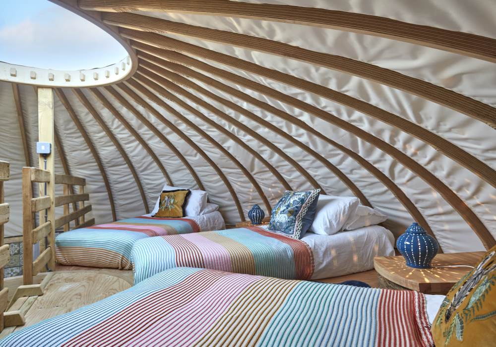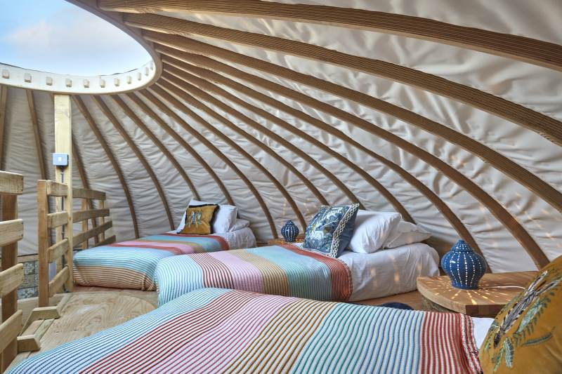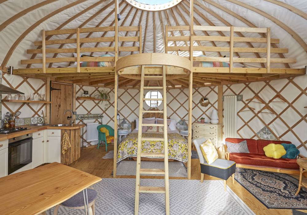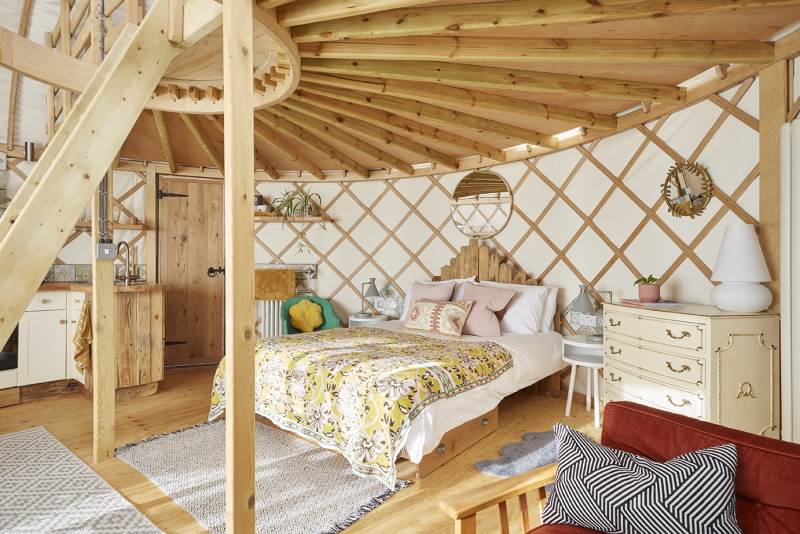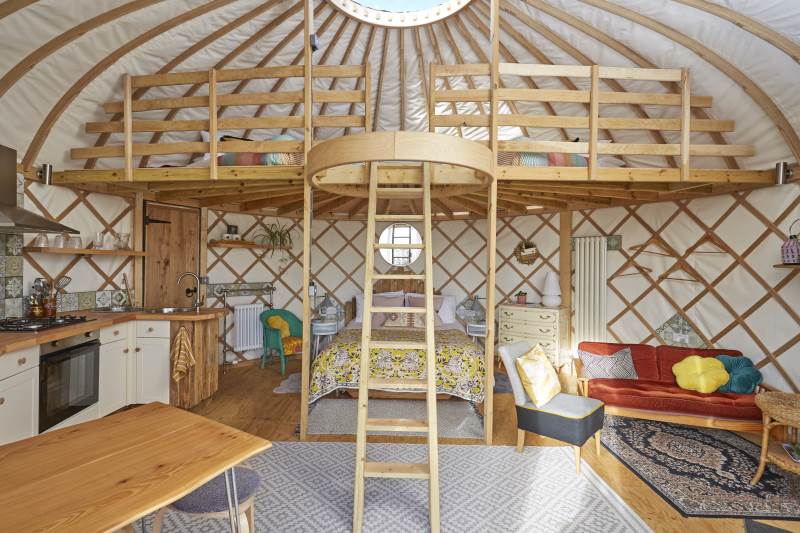 It’s a unique quirky yurt sleeping 5, a king bed downstairs and 3 singles on the mezzanine!